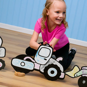Construction Companion Color & Play Set | 12 Pack | Backhoe, Crane, Skid Steer, and Steamroller