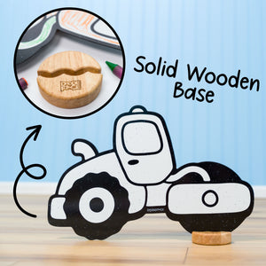 Durable, Sustainable, and Safe. Premium thick materials and solid wooden bases ensure lasting durability, reduced waste, and genuine value. Made from high-quality, child-safe, non-toxic materials for worry-free play. A Montessori-inspired toy that benefits families, classrooms, and the planet. Characters made in the USA; crayons made in China.