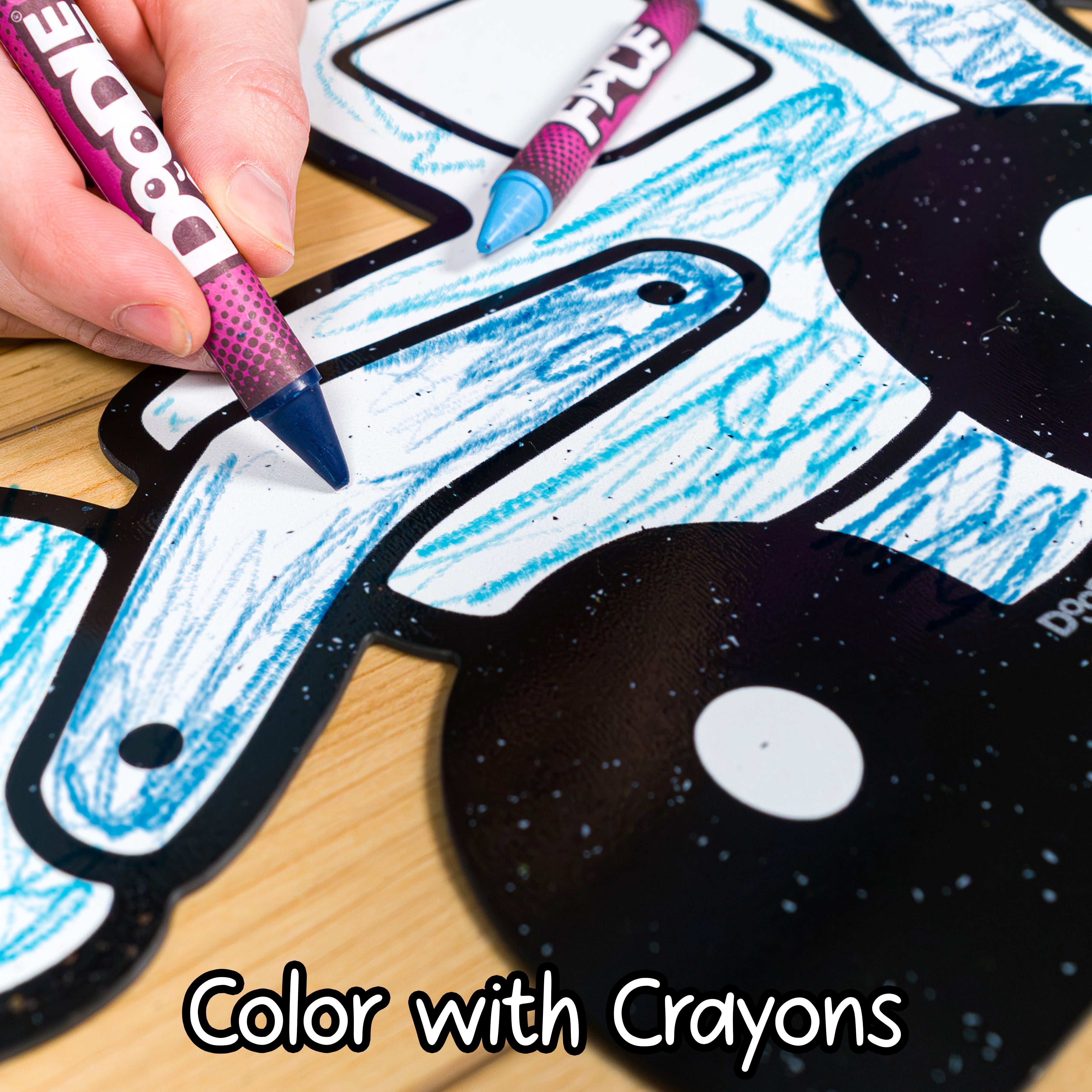 Color, Play, and Wipe Away for Endless Fun. Color with DoodleFace Wipe-Away Crayons. They stay on during play, then magically erase with the included eraser cloth when it is time for a new adventure. Unlike messy dry-erase markers, DoodleFace Crayons never dry out and are perfect for reusable, creative play.