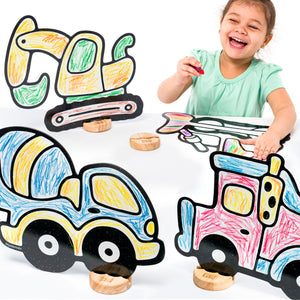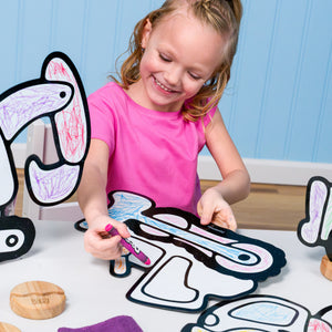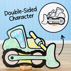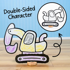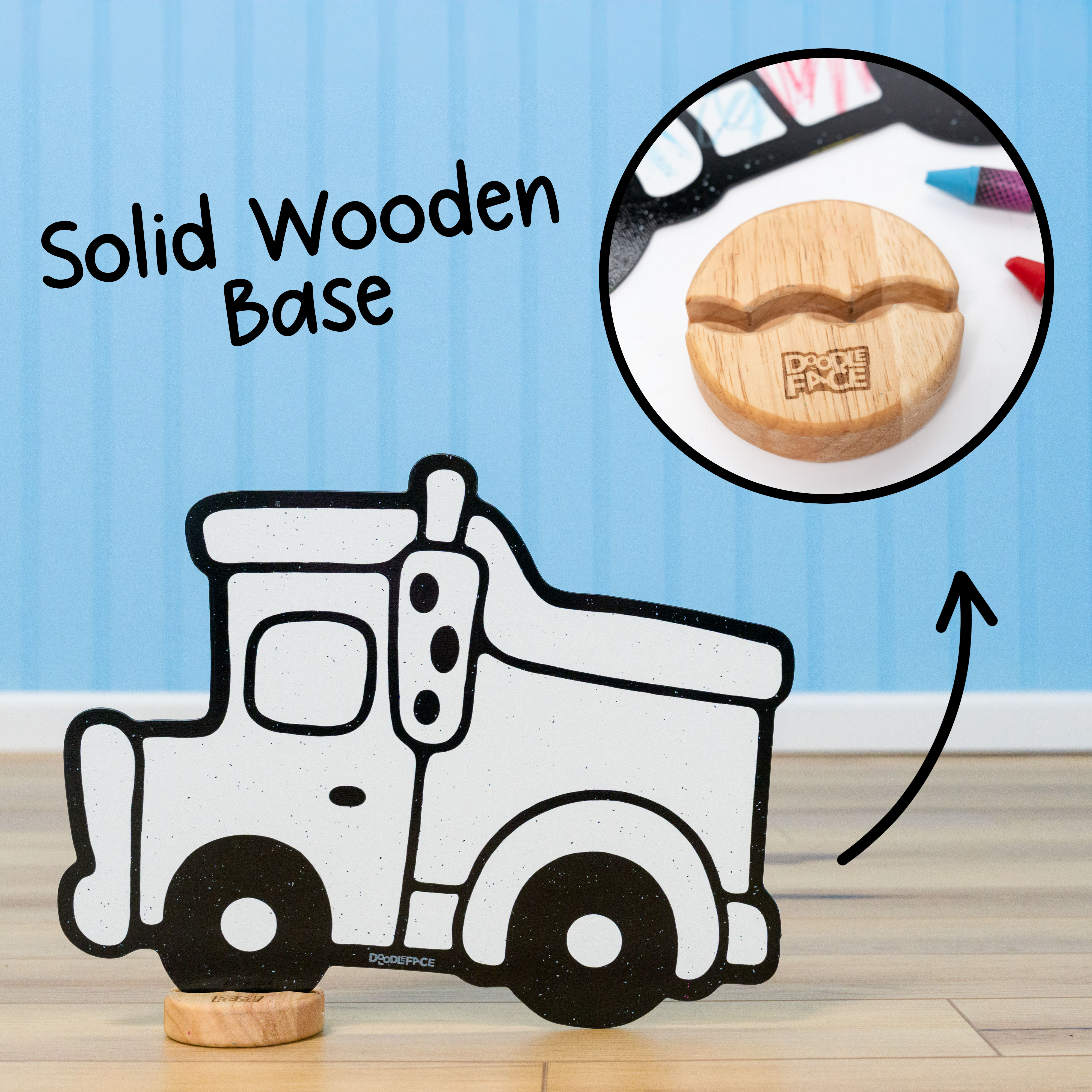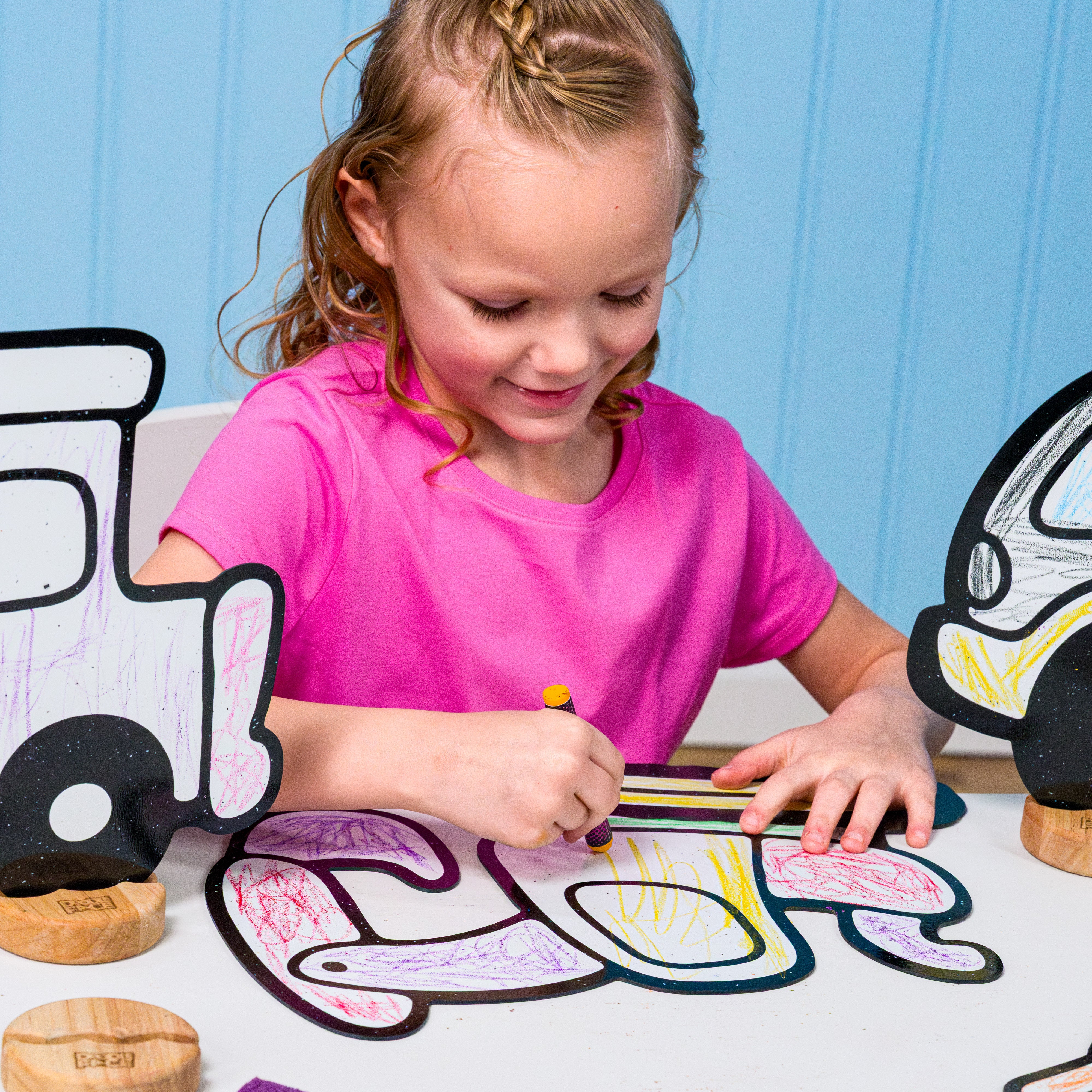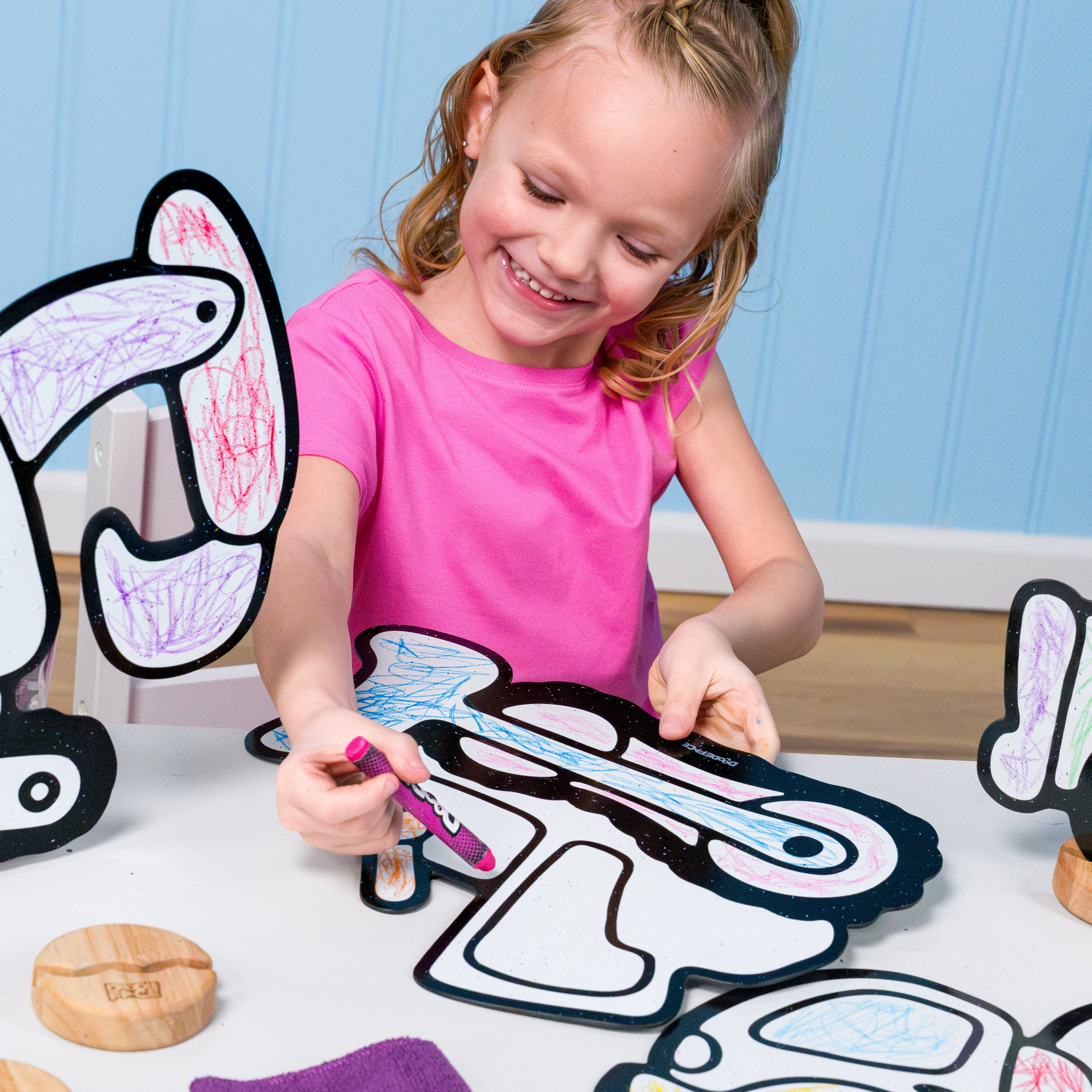 Durable, Sustainable, and Safe. Premium thick materials and solid wooden bases ensure lasting durability, reduced waste, and genuine value. Made from high-quality, child-safe, non-toxic materials for worry-free play. A Montessori-inspired toy that benefits families, classrooms, and the planet. Characters made in the USA; crayons made in China.