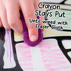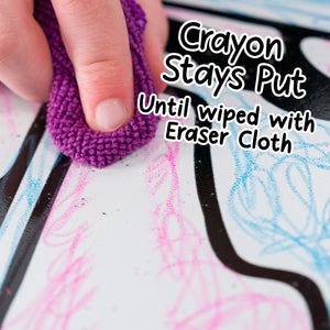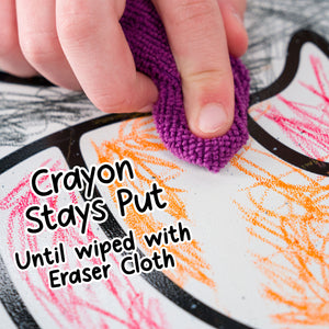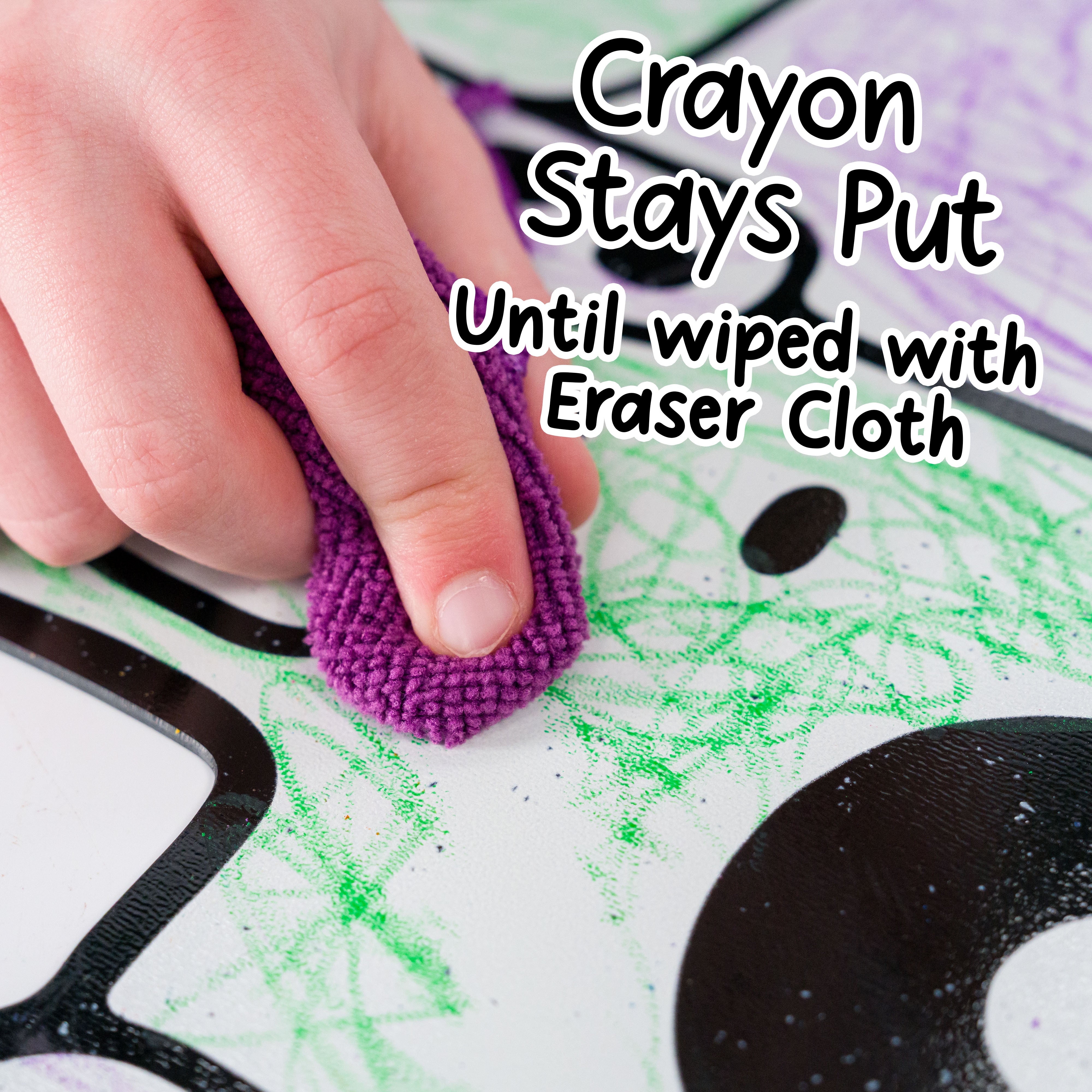 Color, Play, and Wipe Away for Endless Fun. Color with DoodleFace Wipe-Away Crayons. They stay on during play, then magically erase with the included eraser cloth when it is time for a new adventure. Unlike messy dry-erase markers, DoodleFace Crayons never dry out and are perfect for reusable, creative play.