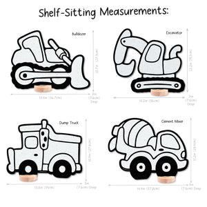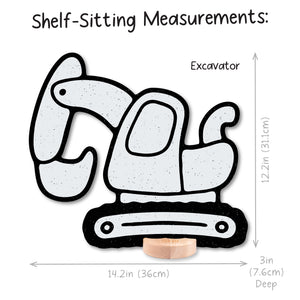 Excavator: Shelf Sitting (12.2 in x 14.2 in), Peg-Hanging (13.7 in x 14.2 in)