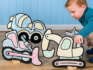 Construction Equipment Color & Play Set | 12 Pack | Excavator, Bulldozer, Dump Truck, and Cement Mixer