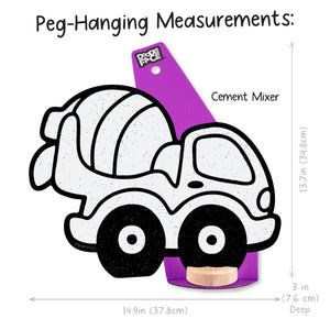 Cement Mixer: Shelf Sitting (11.2 in x 14.9 in), Peg-Hanging (13.7 in x 14.9 in)