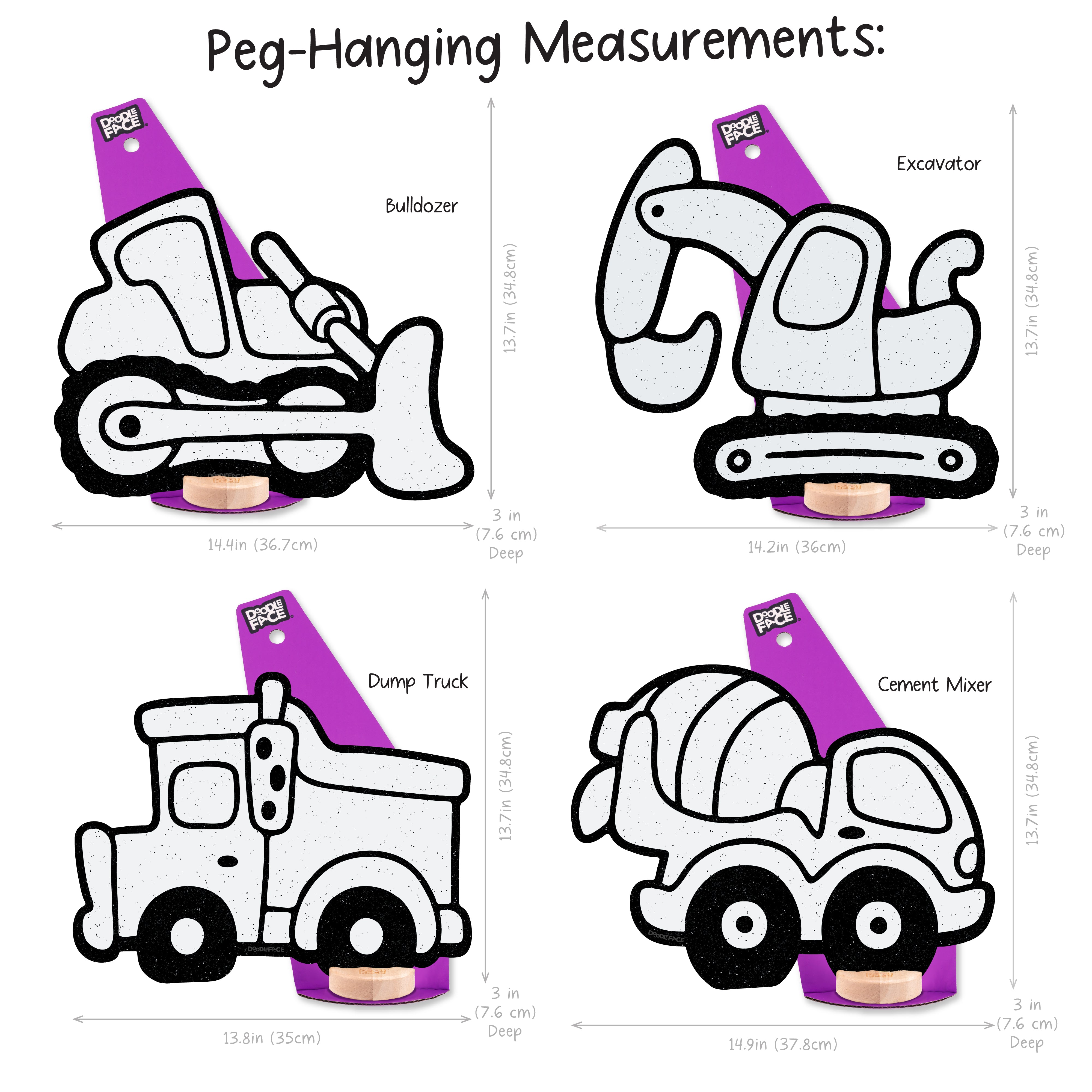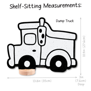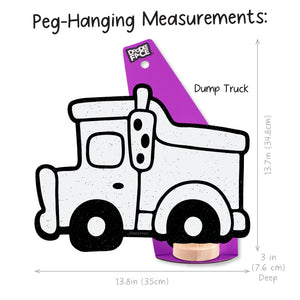 Dump Truck: Shelf Sitting (10.9 in x 13.8 in), Peg-Hanging (13.7 in x 13.8 in)