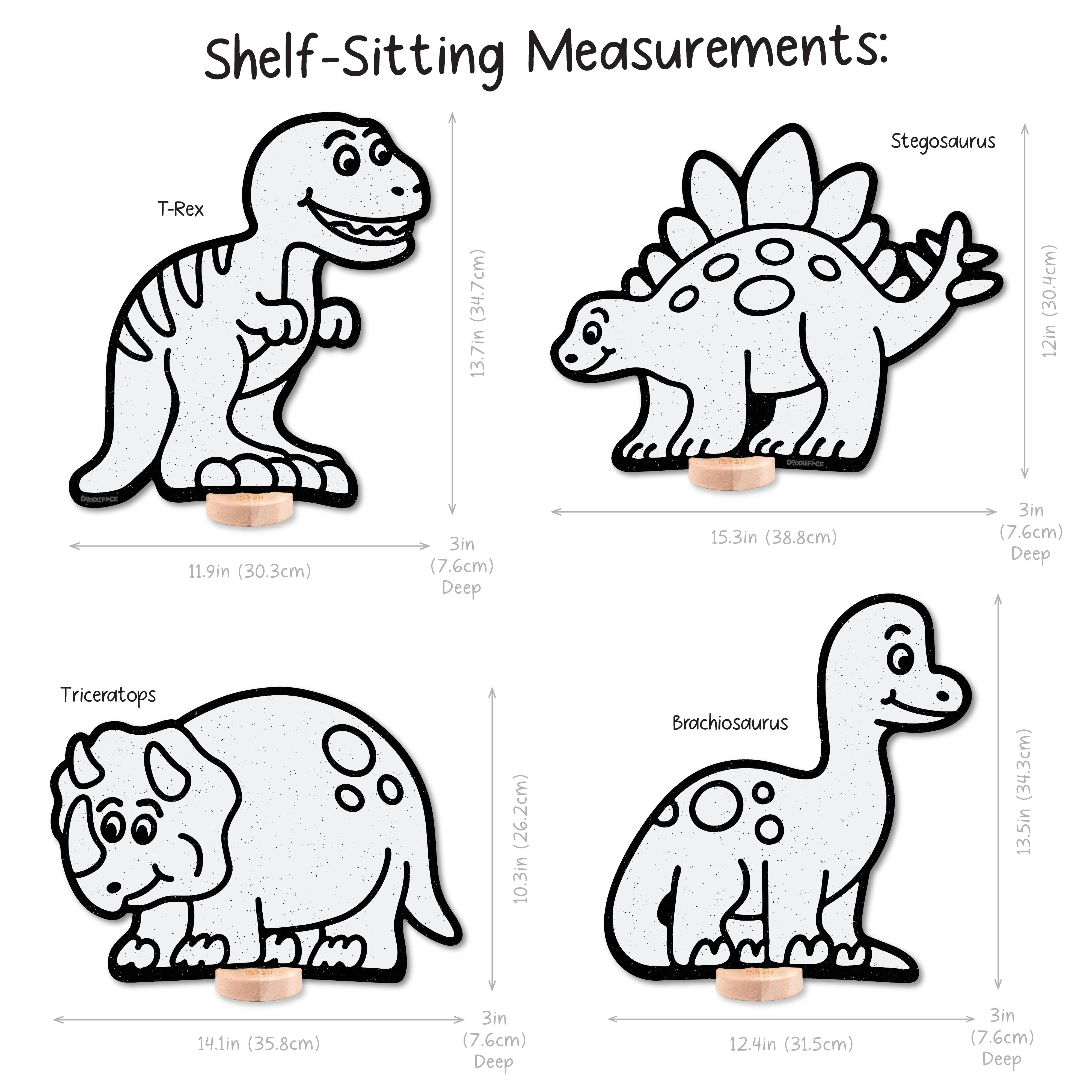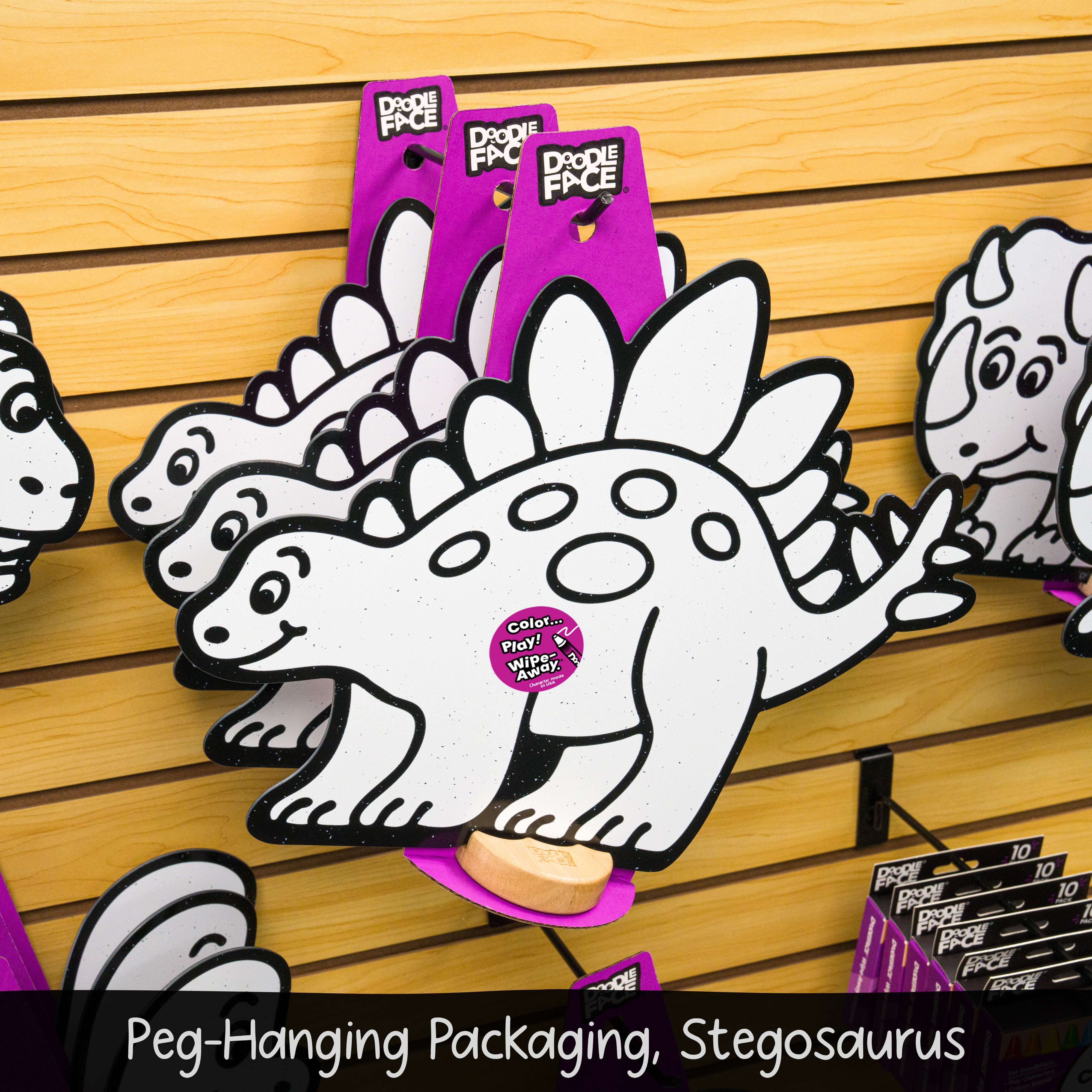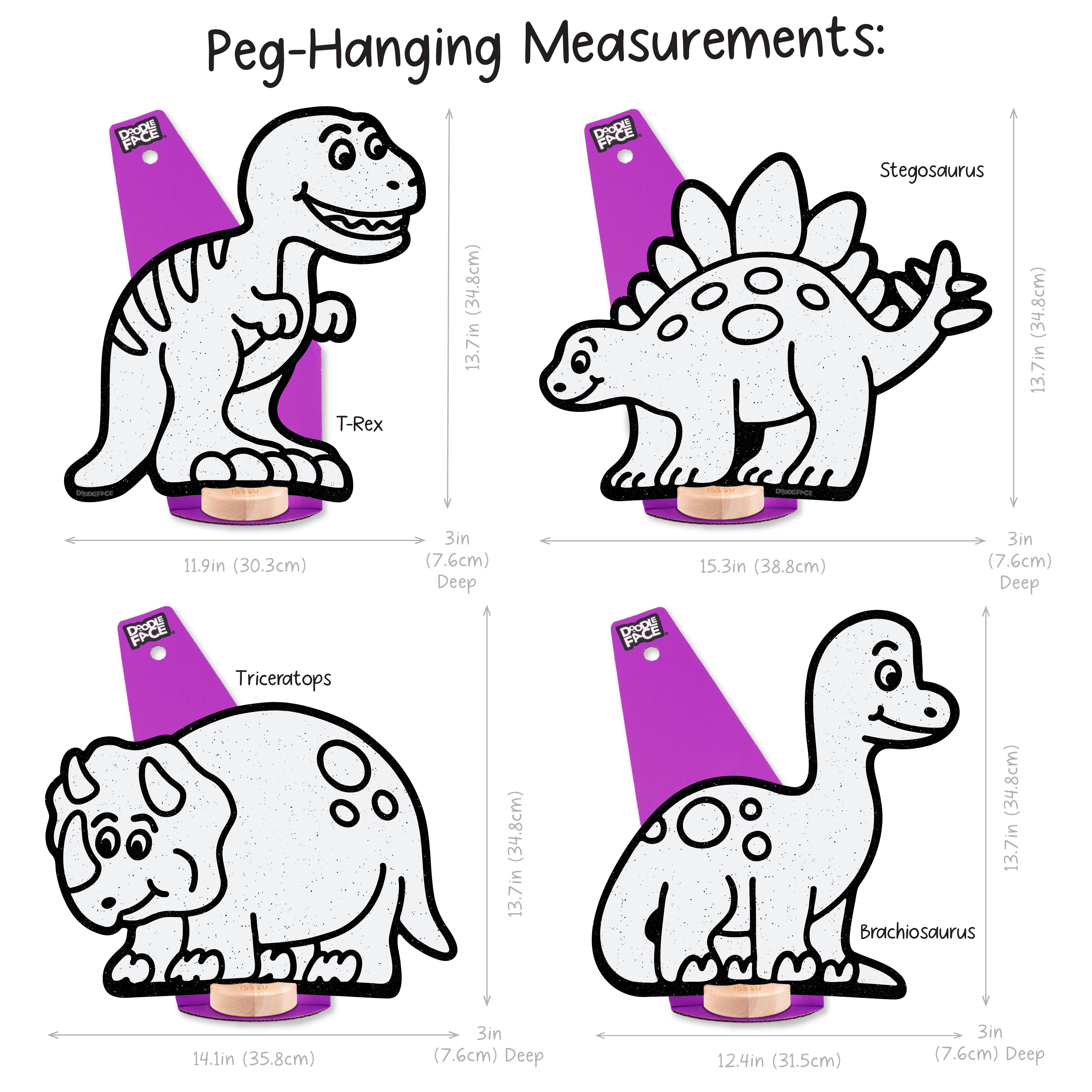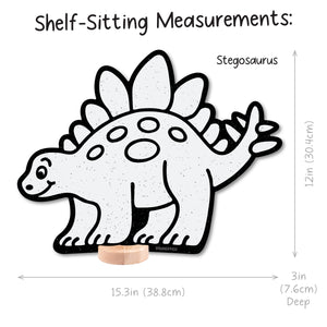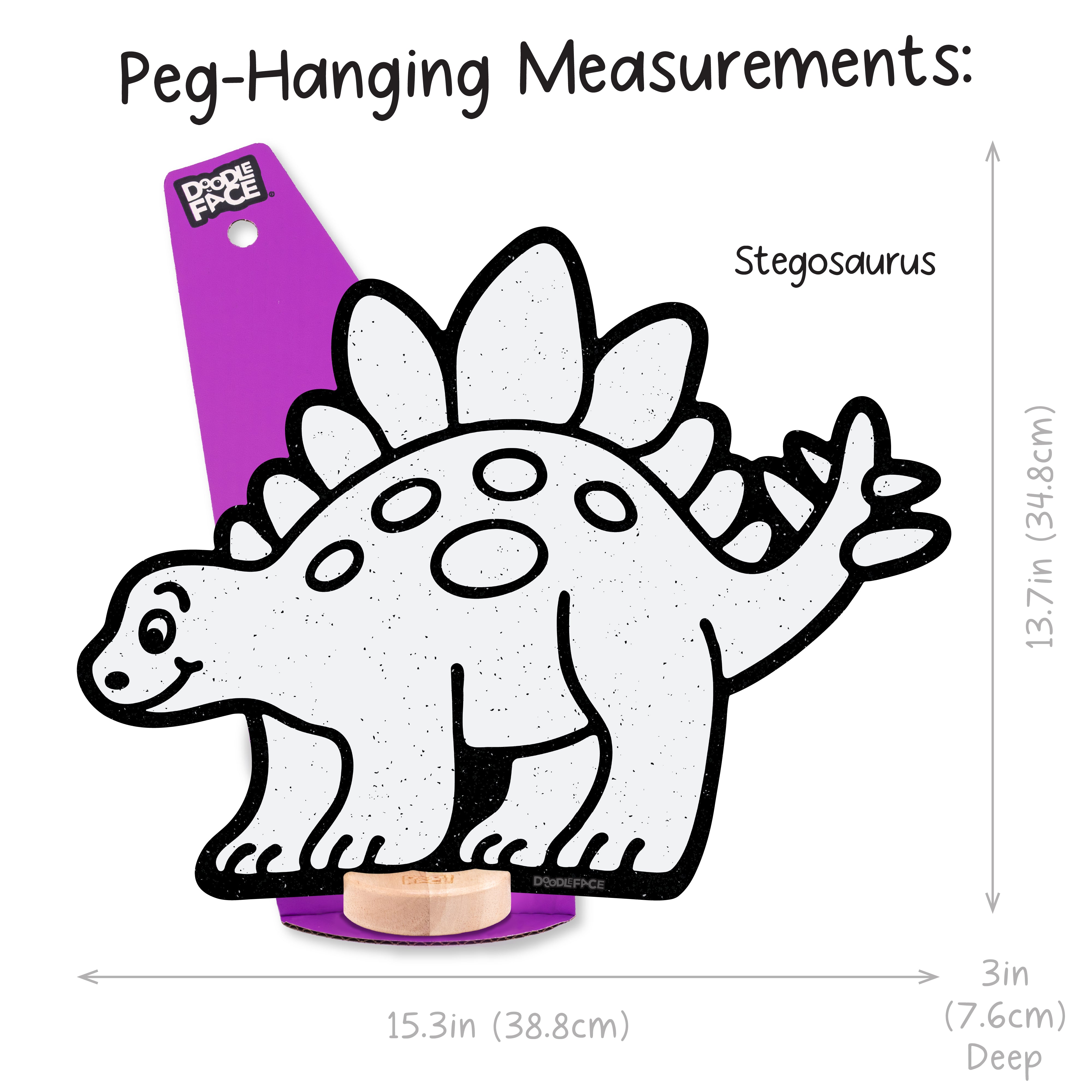 Stegosaurus: Shelf Sitting (12 in x 15.3 in), Peg-Hanging (13.7 in x 15.3 in)