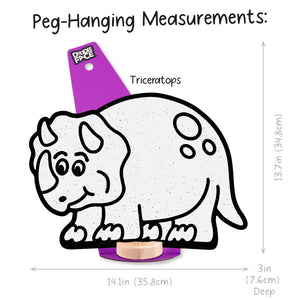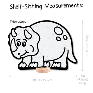 Triceratops: Shelf Sitting (10.3 in x 14.1 in), Peg-Hanging (13.7 in x 14.1 in)