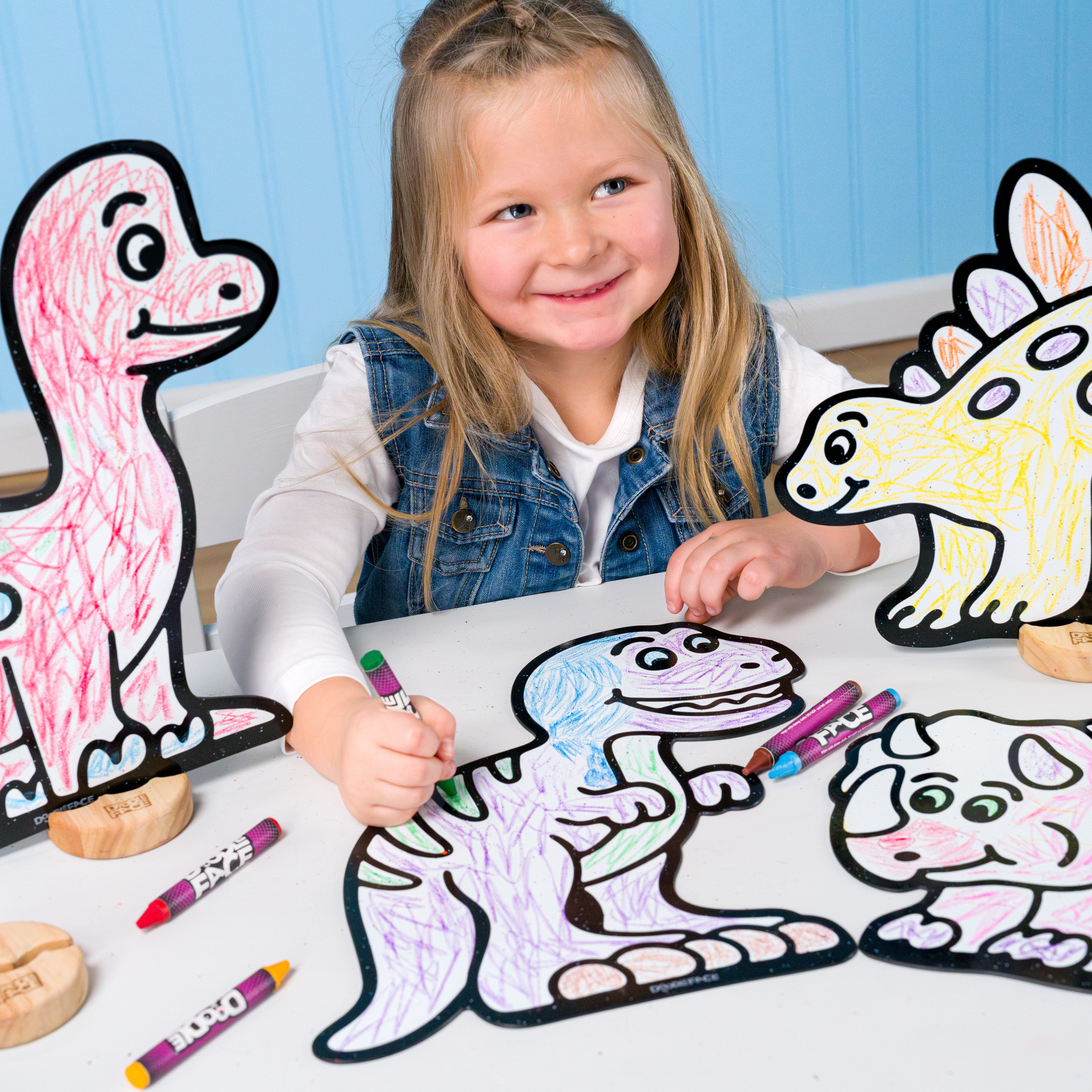 Color, Play, and Wipe Away for Endless Fun. Color with DoodleFace Wipe-Away Crayons. They stay on during play, then magically erase with the included eraser cloth when it is time for a new adventure. Unlike messy dry-erase markers, DoodleFace Crayons never dry out and are perfect for reusable, creative play.