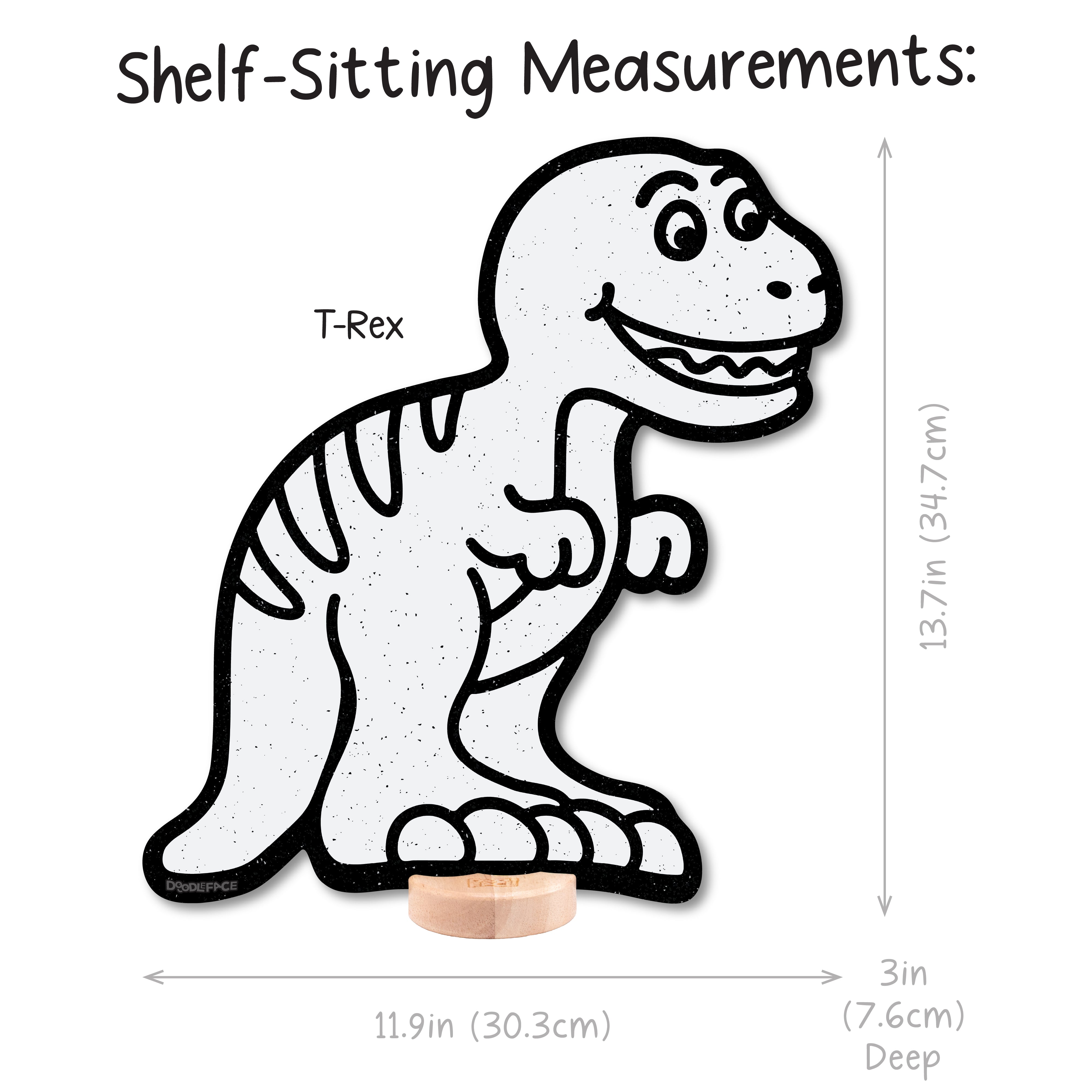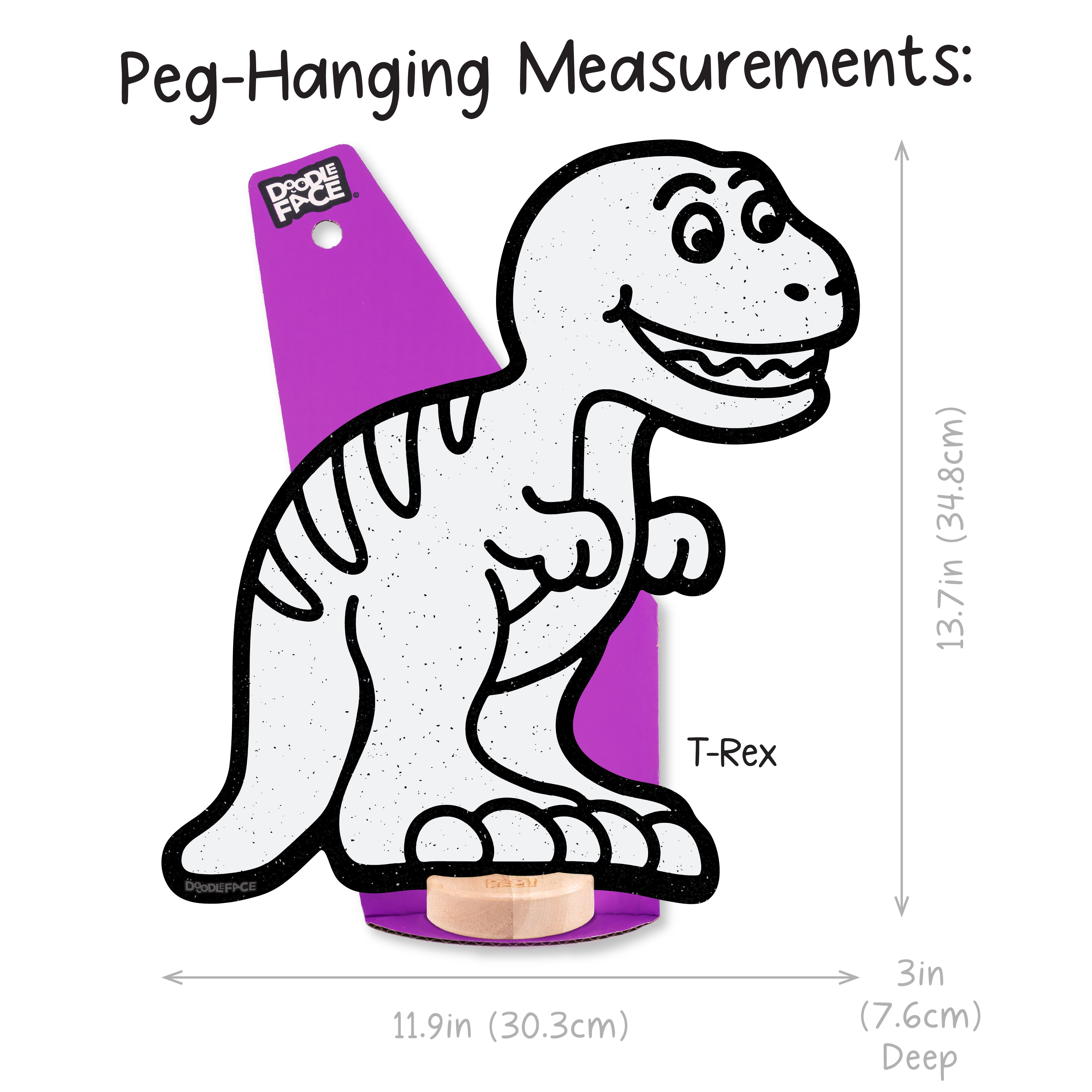 T-Rex: Shelf Sitting (13.7 in x 11.9 in), Peg-Hanging (13.7 in x 11.9 in)