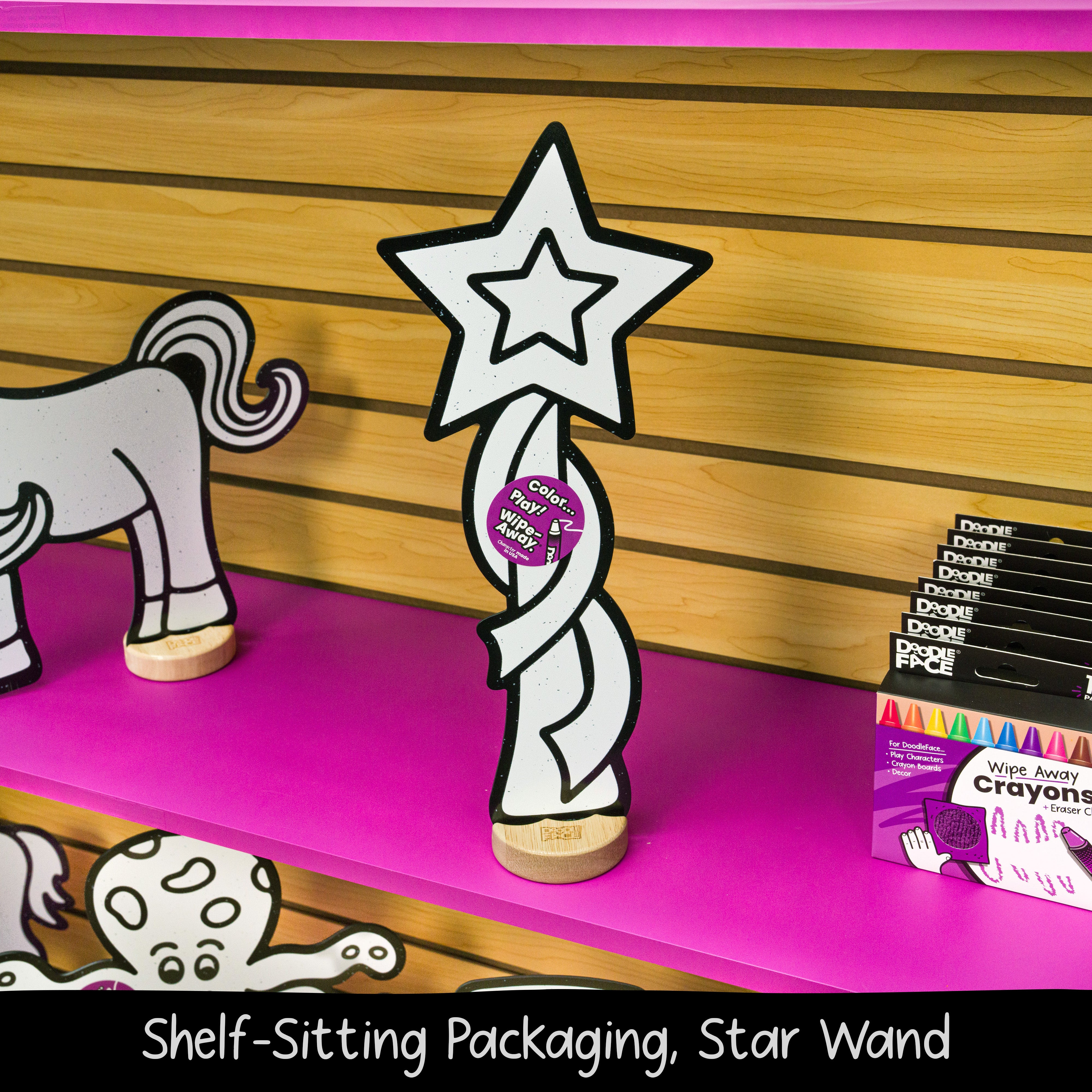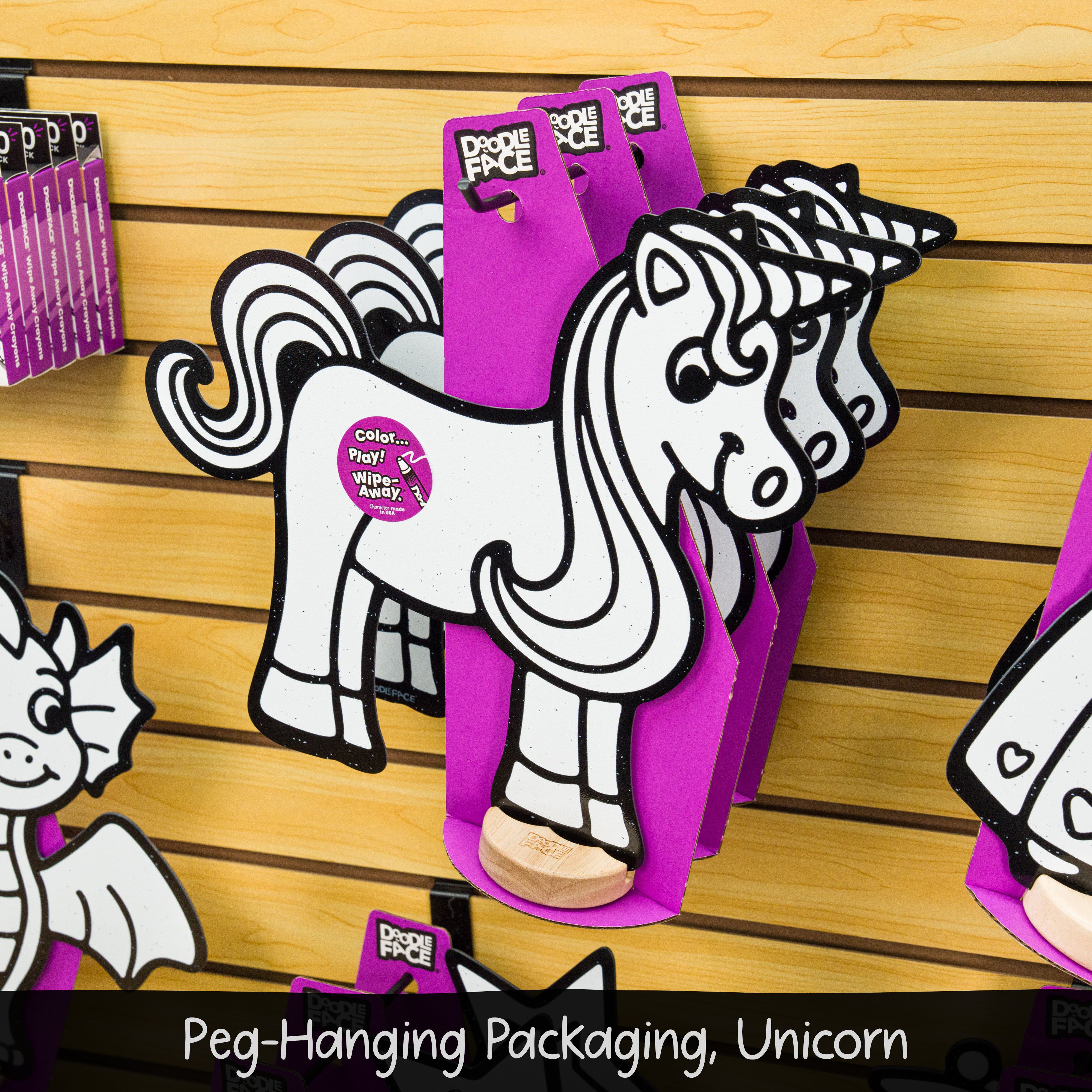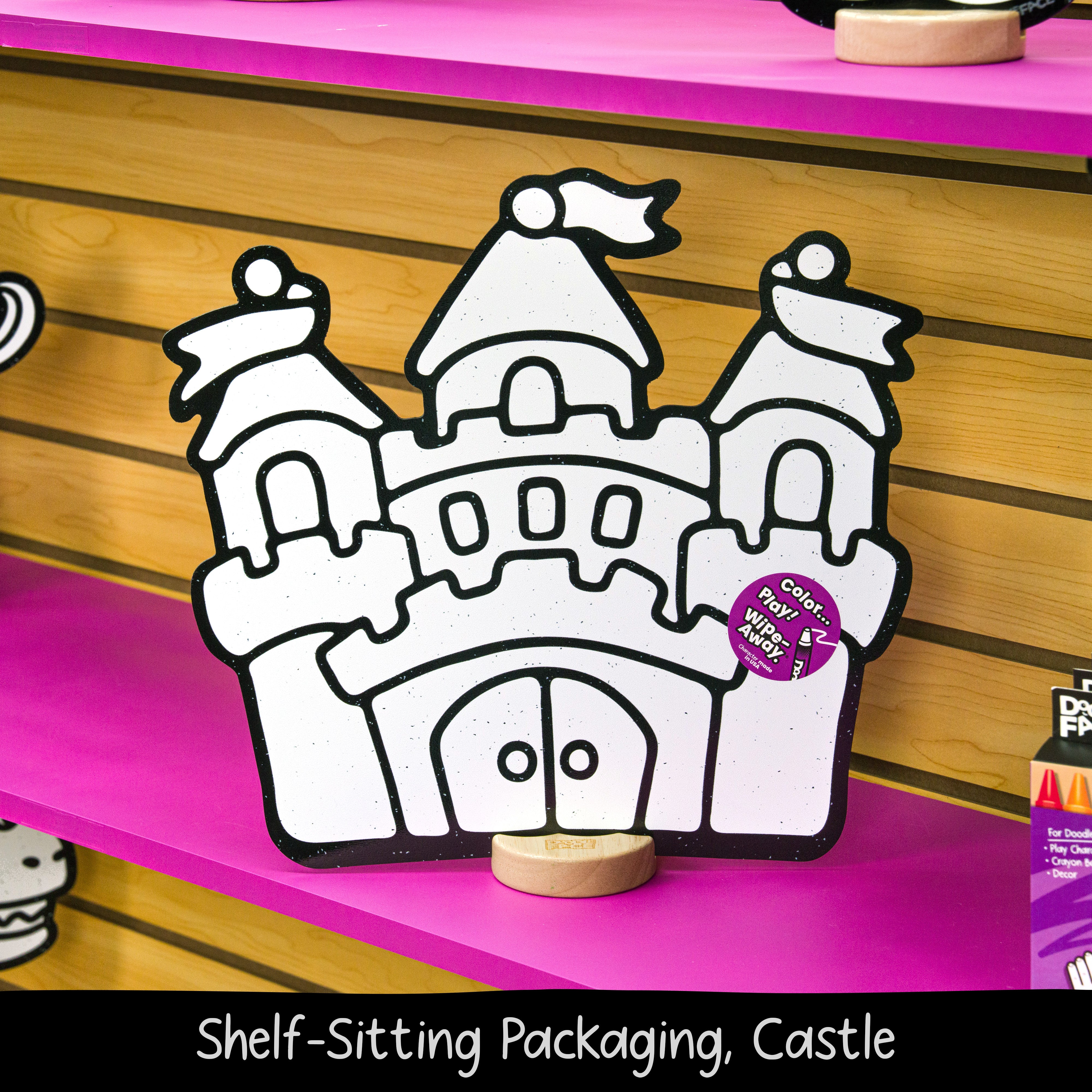 Color and recolor with DoodleFace Wipe-Away Crayons (purchased separately). They're not messy like markers and don't rub off during play. When it's time for a new adventure, simply wipe the colors away with the eraser cloth and start fresh. No mess, no stress — just the wonder of seeing your child's creativity come to life again and again.