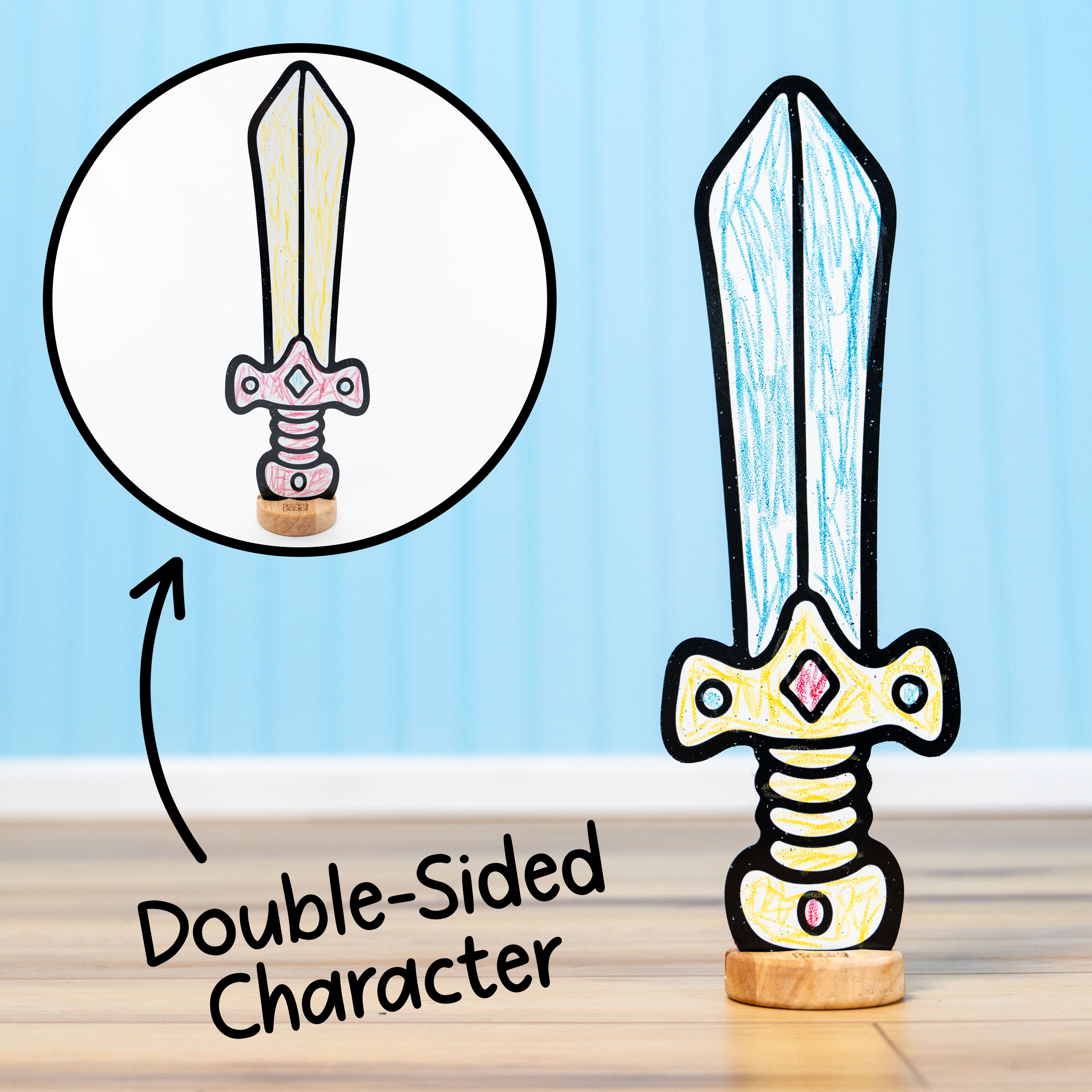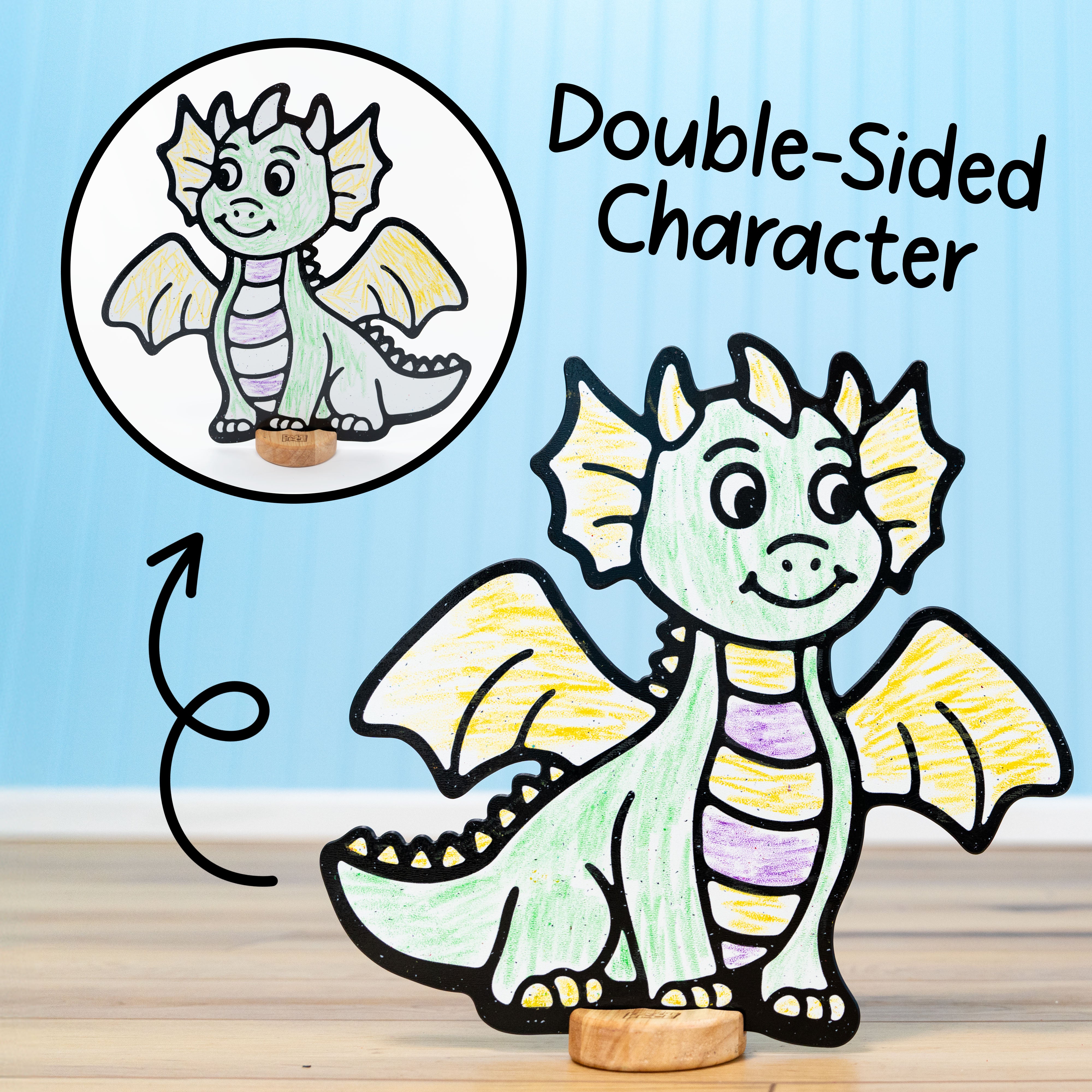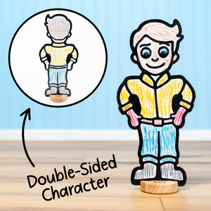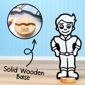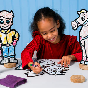 Durable, Sustainable, and Safe. Premium thick materials and solid wooden bases ensure lasting durability, reduced waste, and genuine value. Made from high-quality, child-safe, non-toxic materials for worry-free play. A Montessori-inspired toy that benefits families, classrooms, and the planet. Characters made in the USA; crayons made in China.