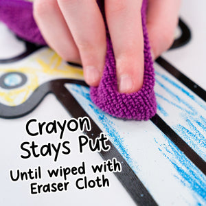 Color, Play, and Wipe Away for Endless Fun. Color with DoodleFace Wipe-Away Crayons. They stay on during play, then magically erase with the included eraser cloth when it is time for a new adventure. Unlike messy dry-erase markers, DoodleFace Crayons never dry out and are perfect for reusable, creative play.