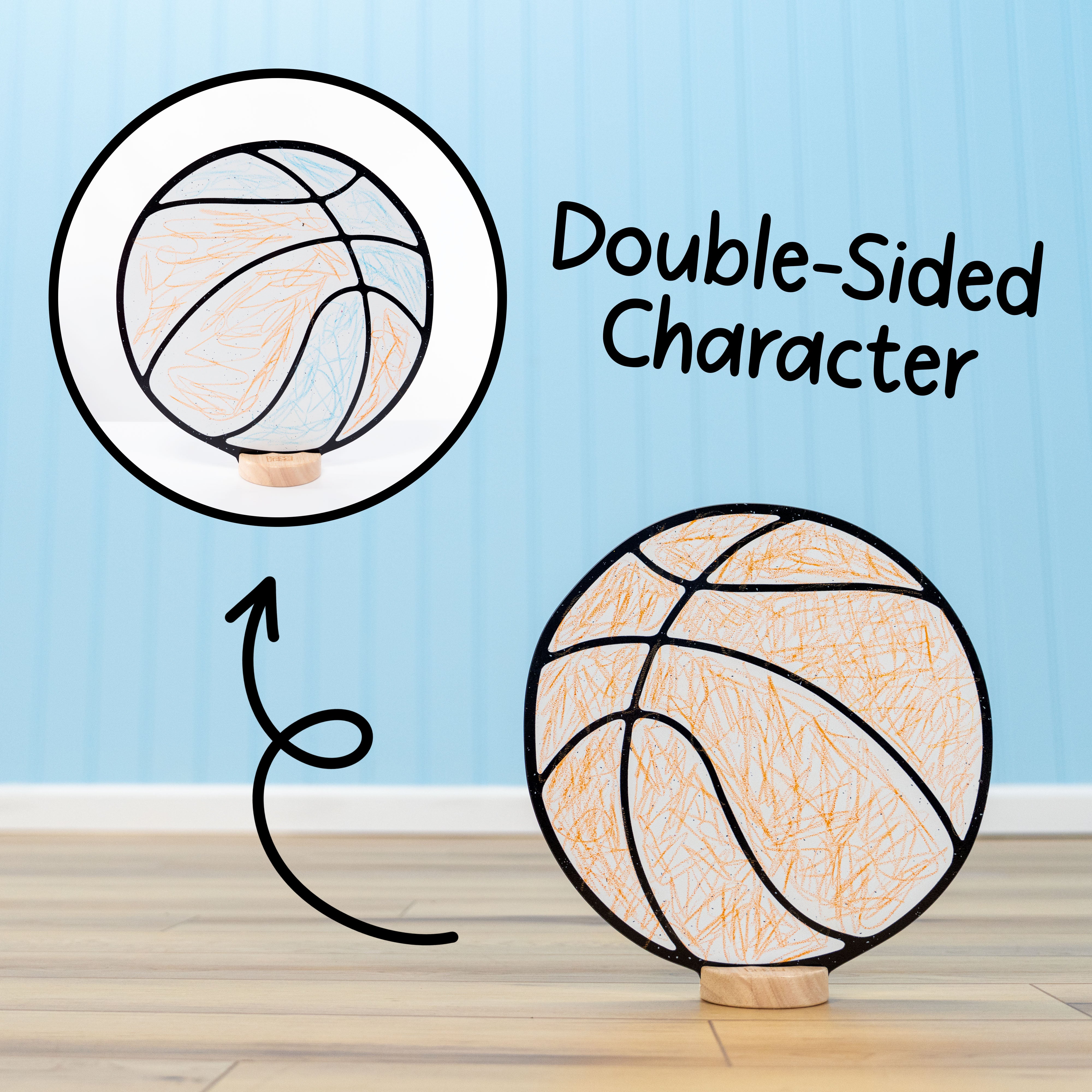 Durable, Sustainable, and Safe. Premium thick materials and solid wooden bases ensure lasting durability, reduced waste, and genuine value. Made from high-quality, child-safe, non-toxic materials for worry-free play. A Montessori-inspired toy that benefits families, classrooms, and the planet. Characters made in the USA; crayons made in China.