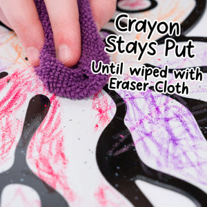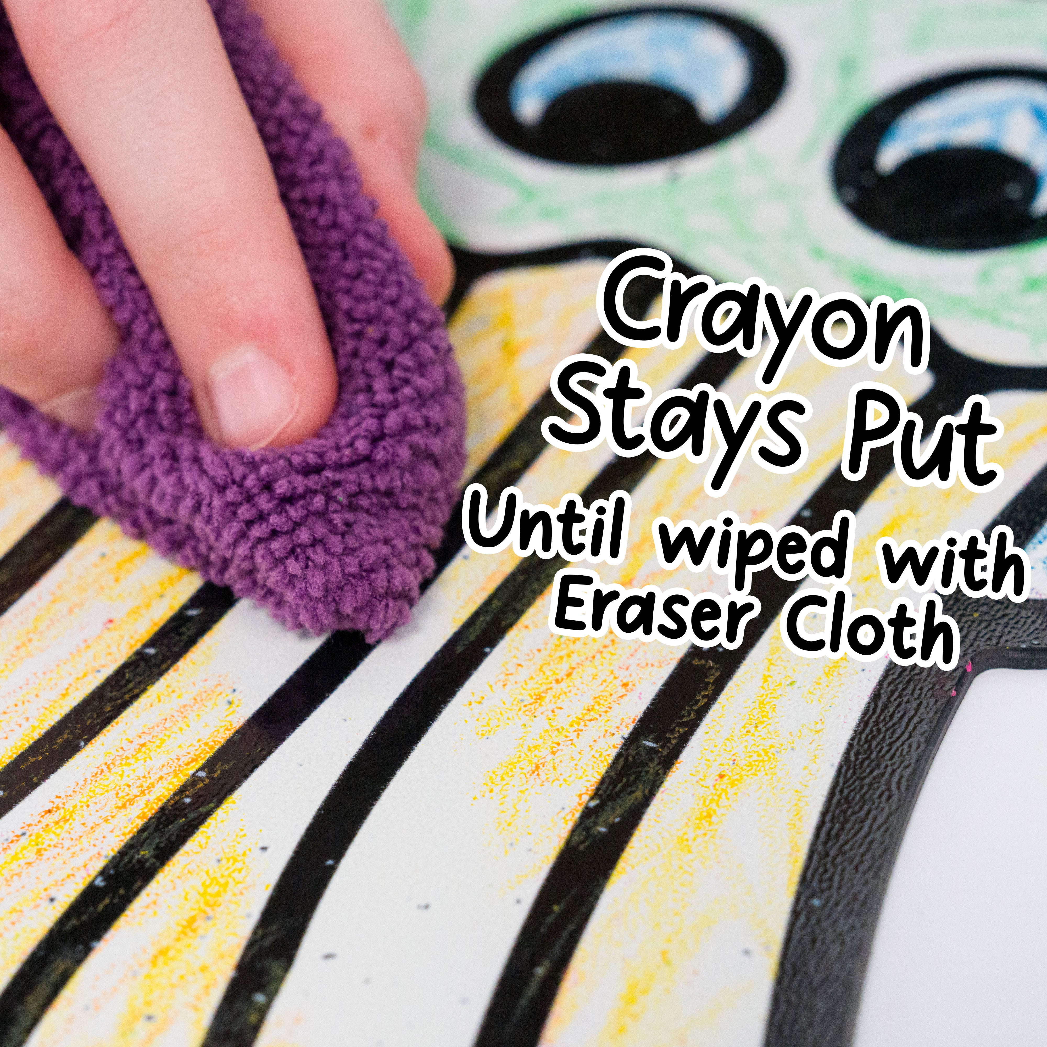Color, Play, and Wipe Away for Endless Fun. Color with DoodleFace Wipe-Away Crayons. They stay on during play, then magically erase with the included eraser cloth when it is time for a new adventure. Unlike messy dry-erase markers, DoodleFace Crayons never dry out and are perfect for reusable, creative play.