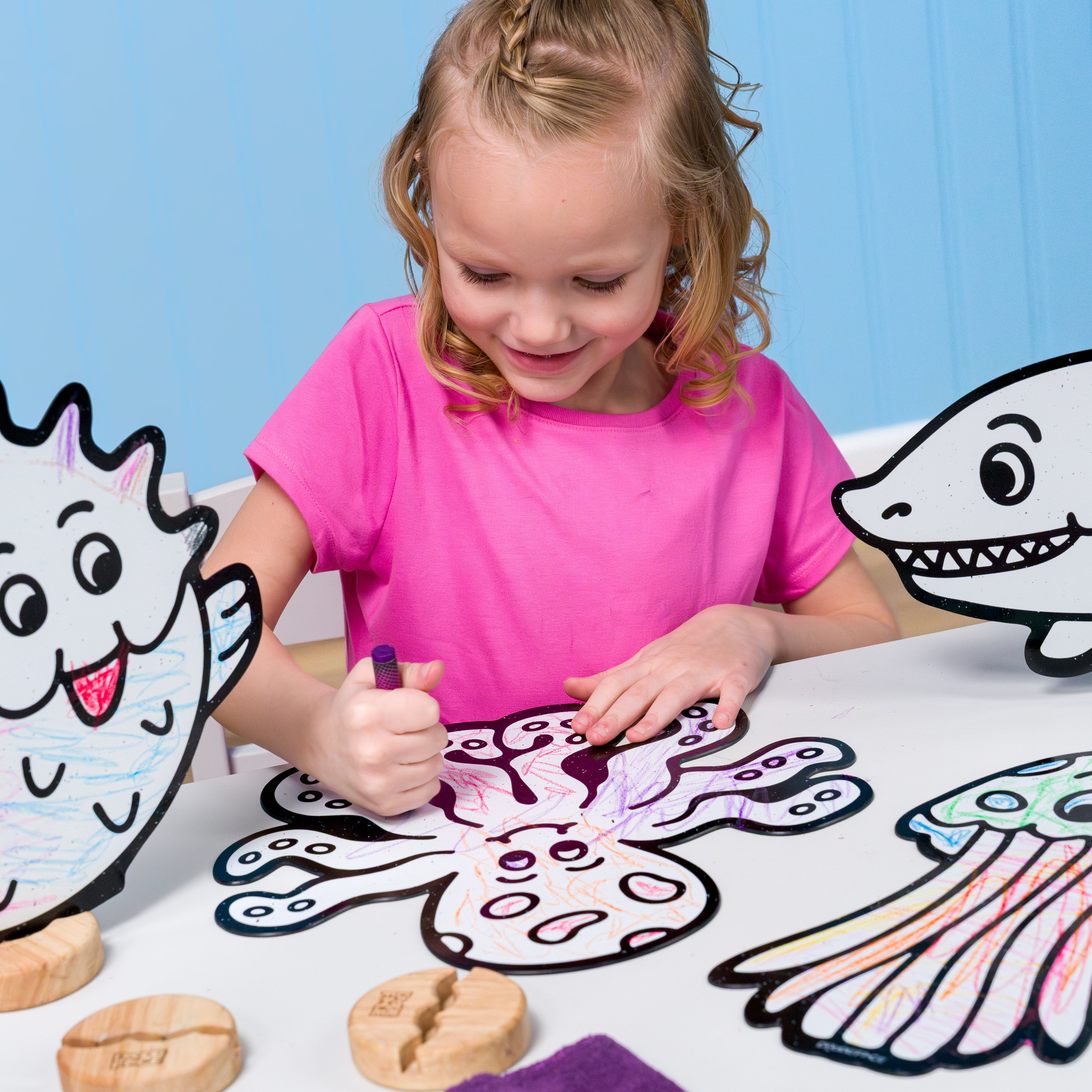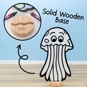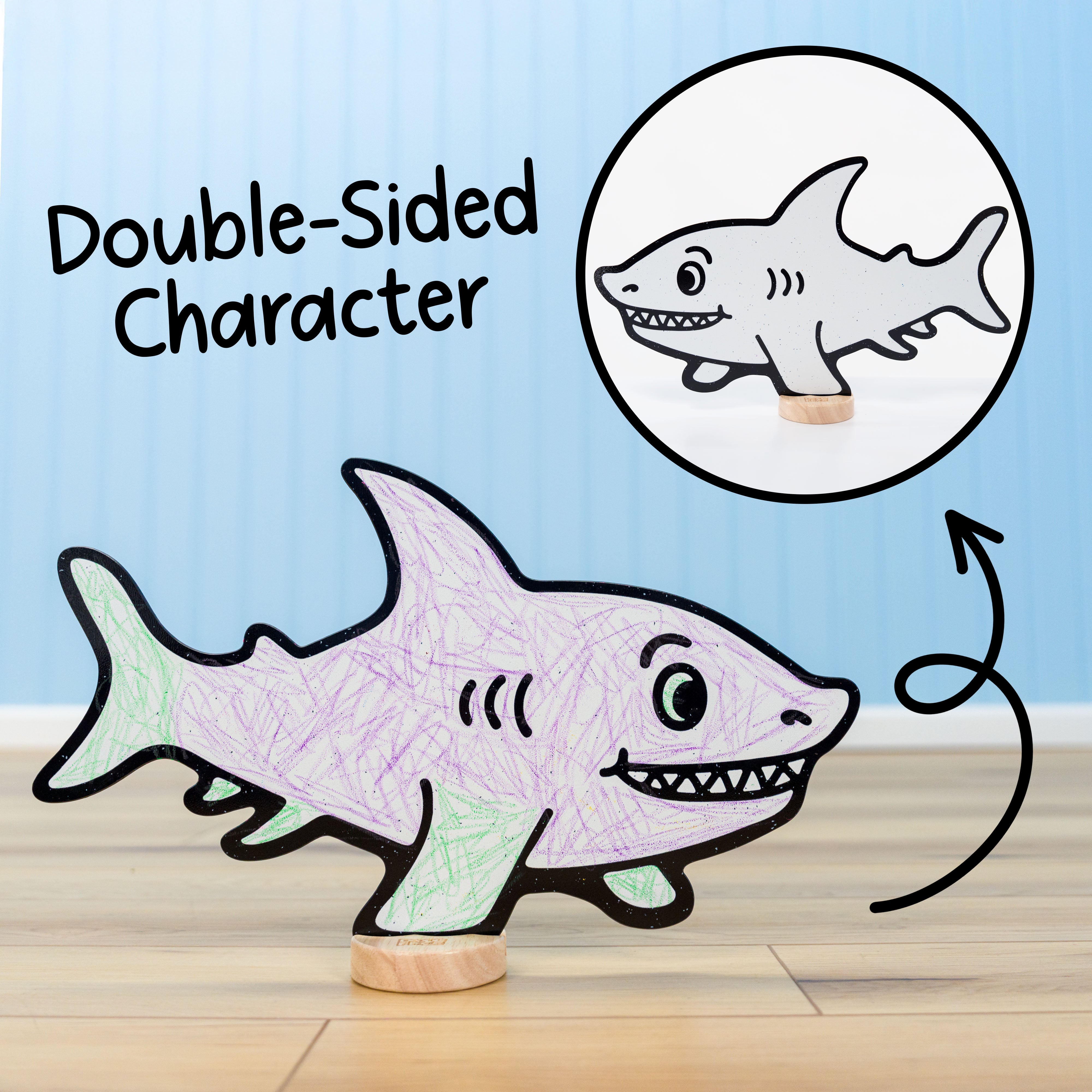 Durable, Sustainable, and Safe. Premium thick materials and solid wooden bases ensure lasting durability, reduced waste, and genuine value. Made from high-quality, child-safe, non-toxic materials for worry-free play. A Montessori-inspired toy that benefits families, classrooms, and the planet. Characters made in the USA; crayons made in China.