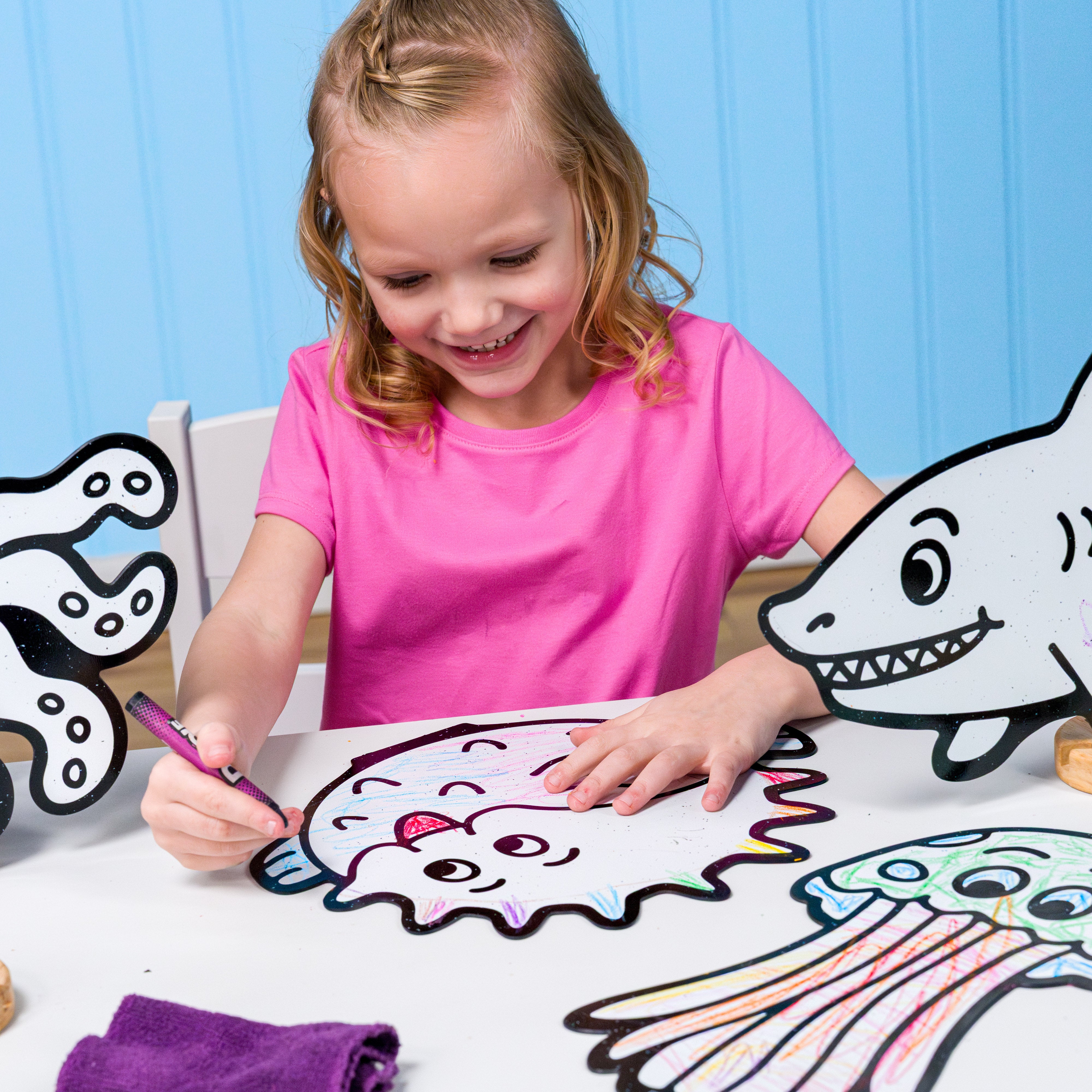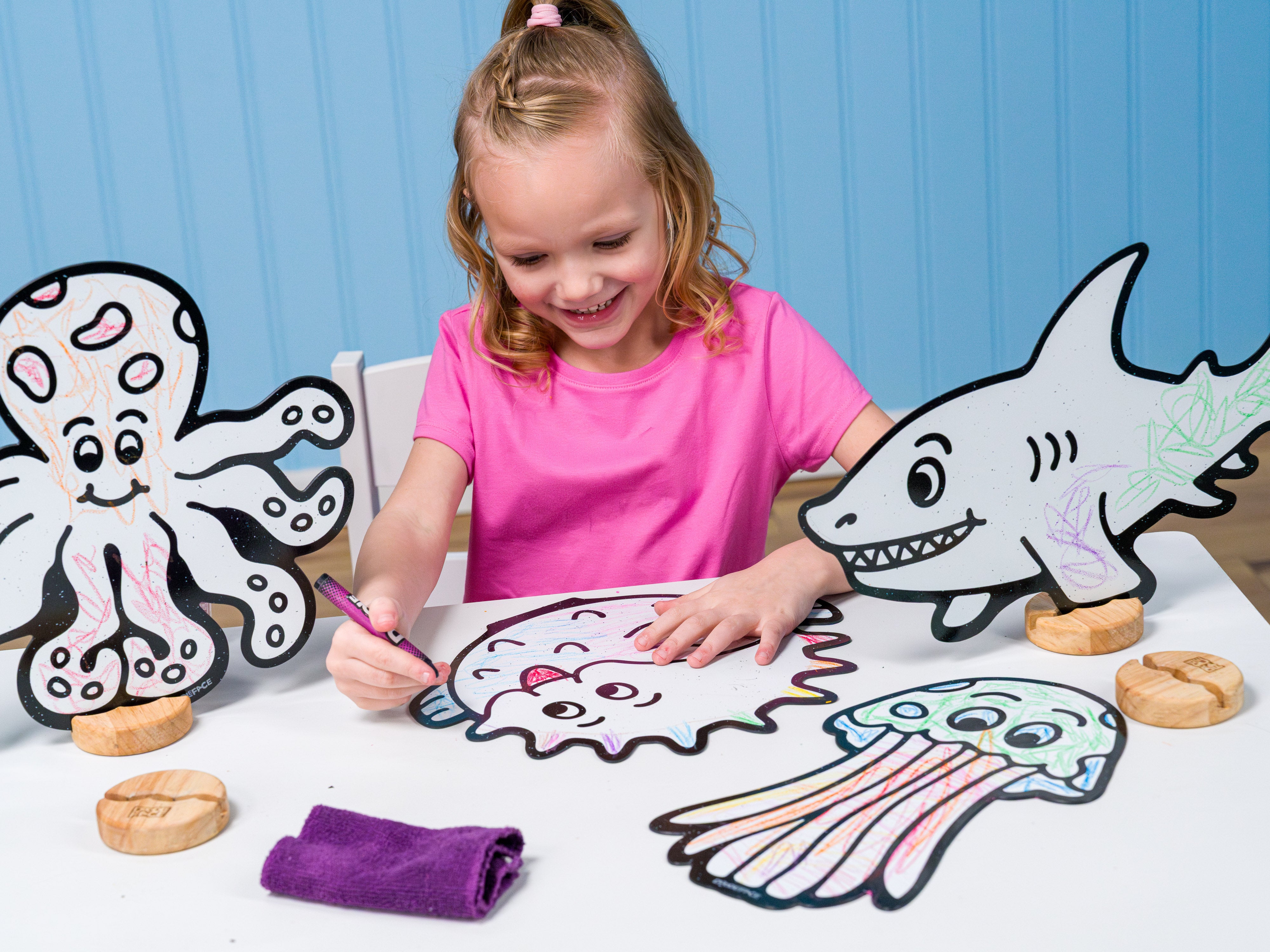 Loved by Kids Ages 0-8. High-contrast characters captivate babies and support visual development. Toddlers strengthen fine motor skills and hand-eye coordination while coloring. Preschoolers and older kids explore storytelling, creativity, and design — taking their art on incredible adventures. Adult supervision is recommended for children under age 3.