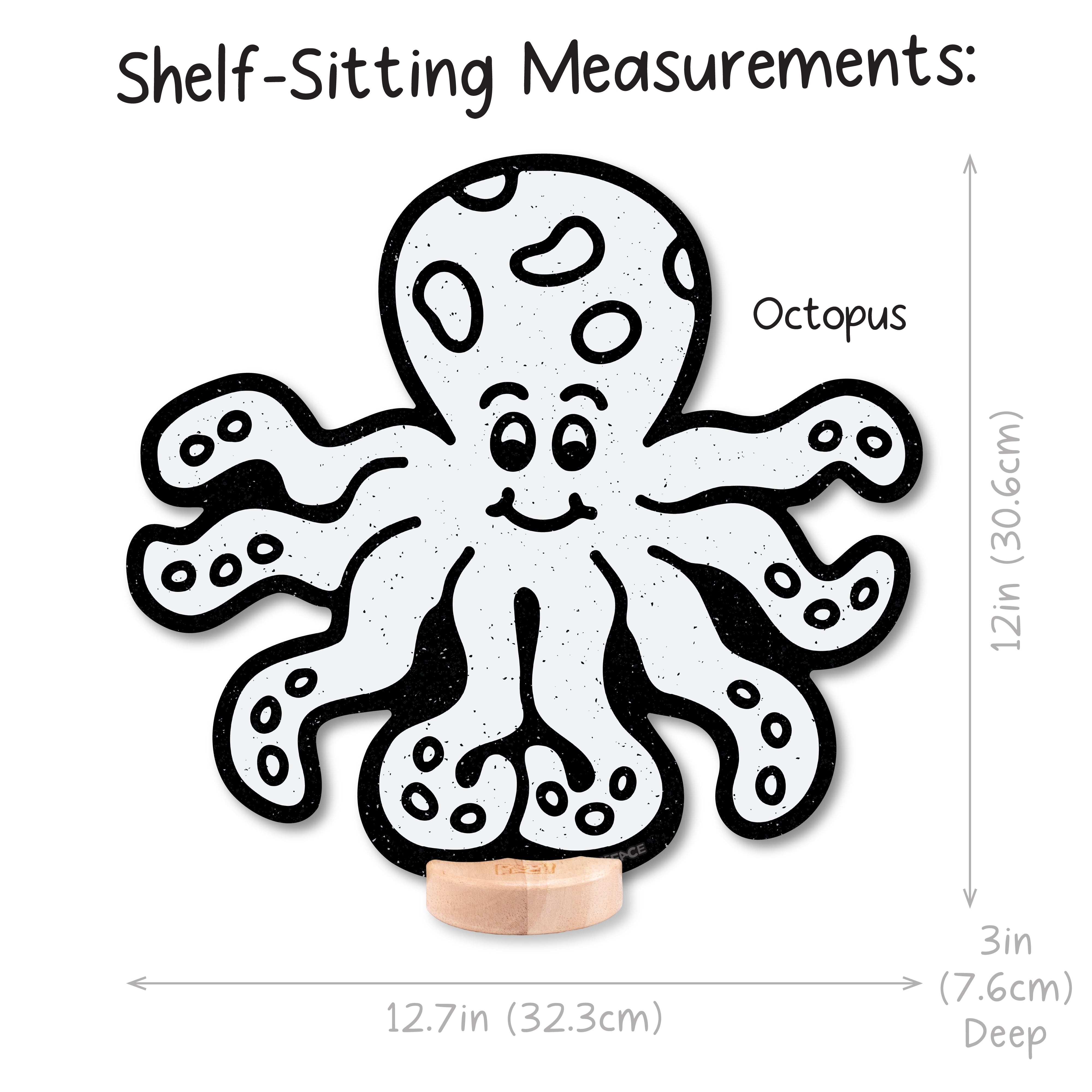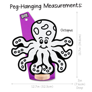 Octopus: Shelf Sitting (12 in x 12.7 in), Peg-Hanging (13.7 in x 12.7 in)