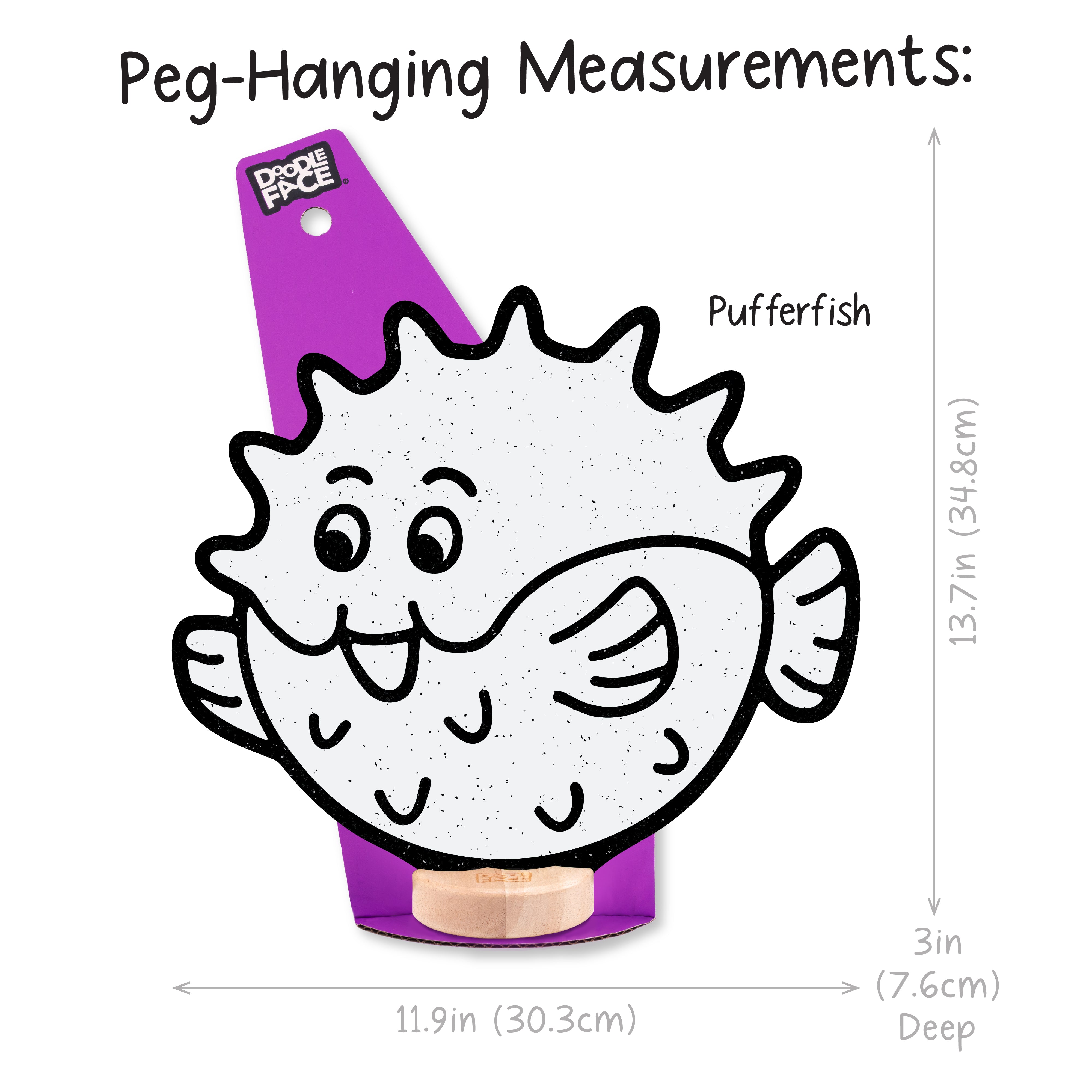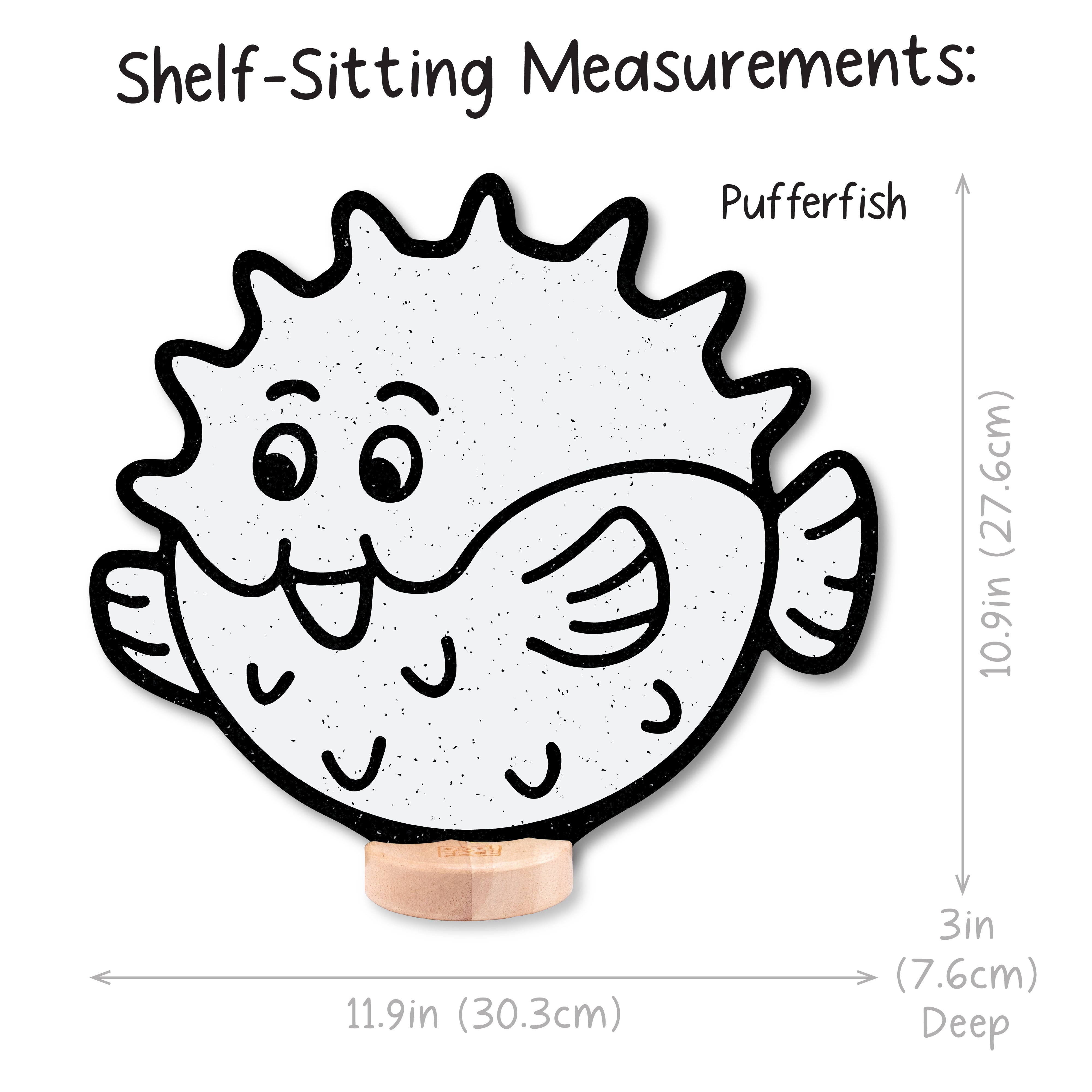Pufferfish: Shelf Sitting (10.9 in x 11.9 in), Peg-Hanging (13.7 in x 11.9 in)