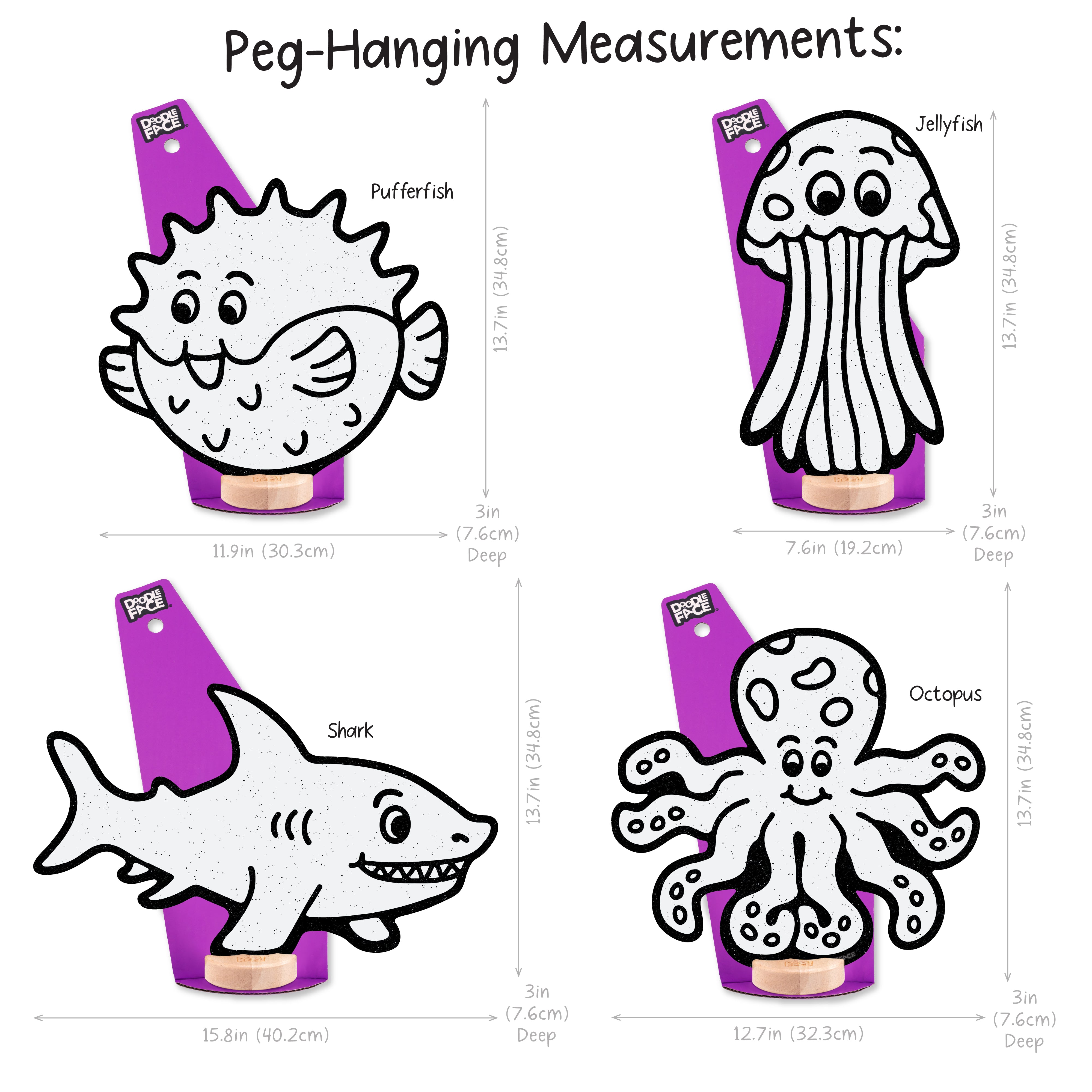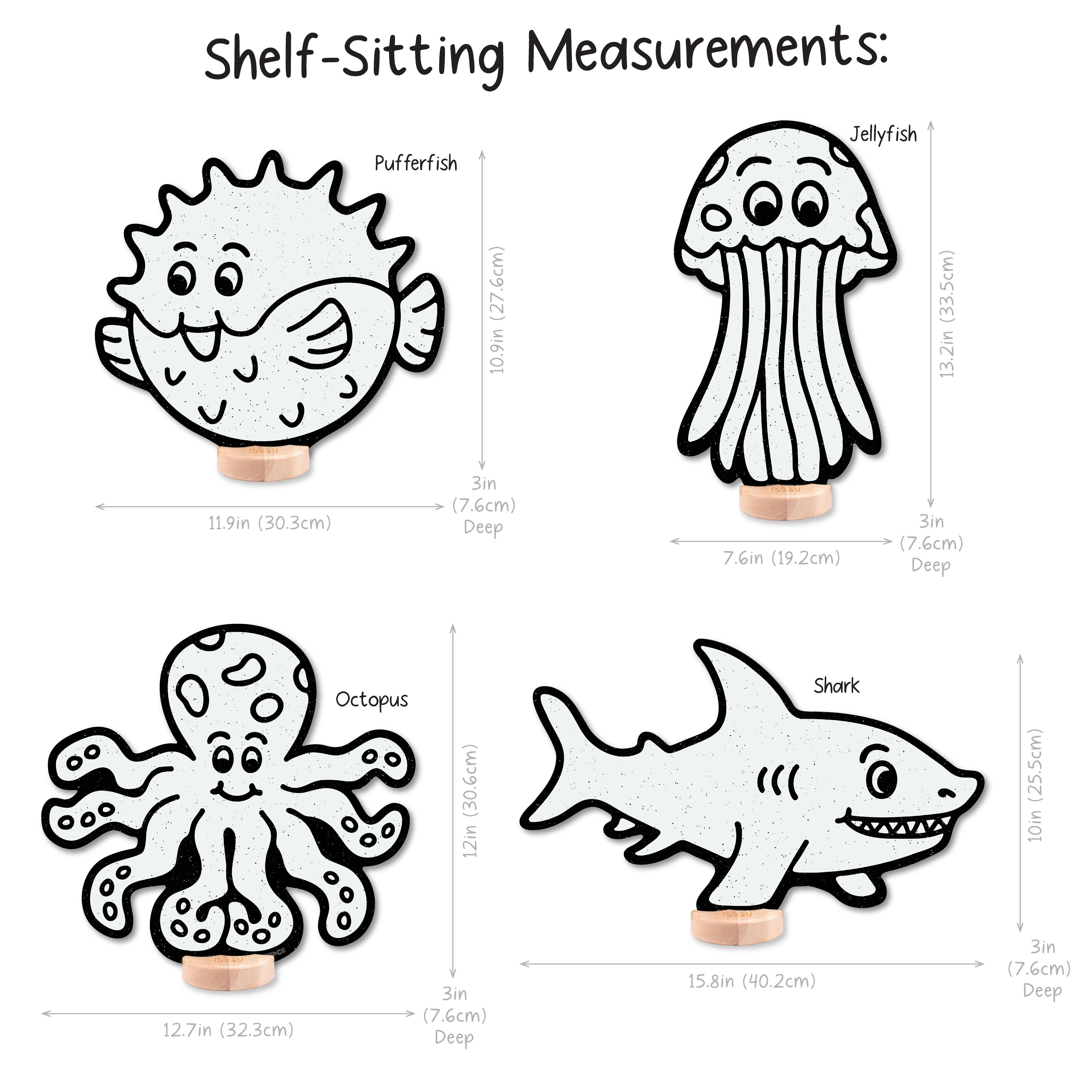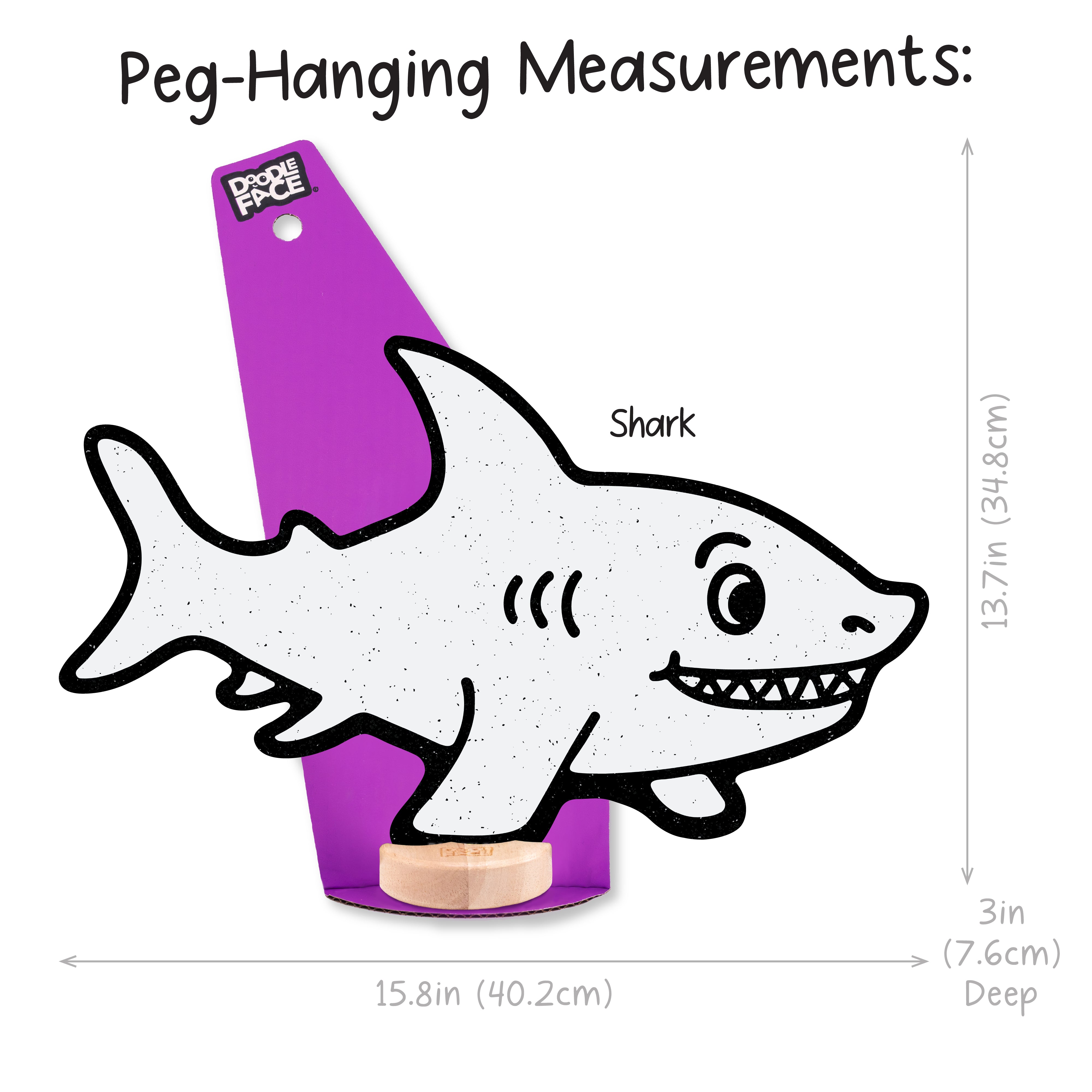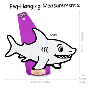 Shark: Shelf Sitting (10 in x 15.8 in), Peg-Hanging (13.7 in x 15.8 in)