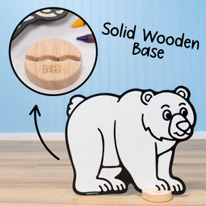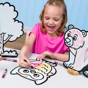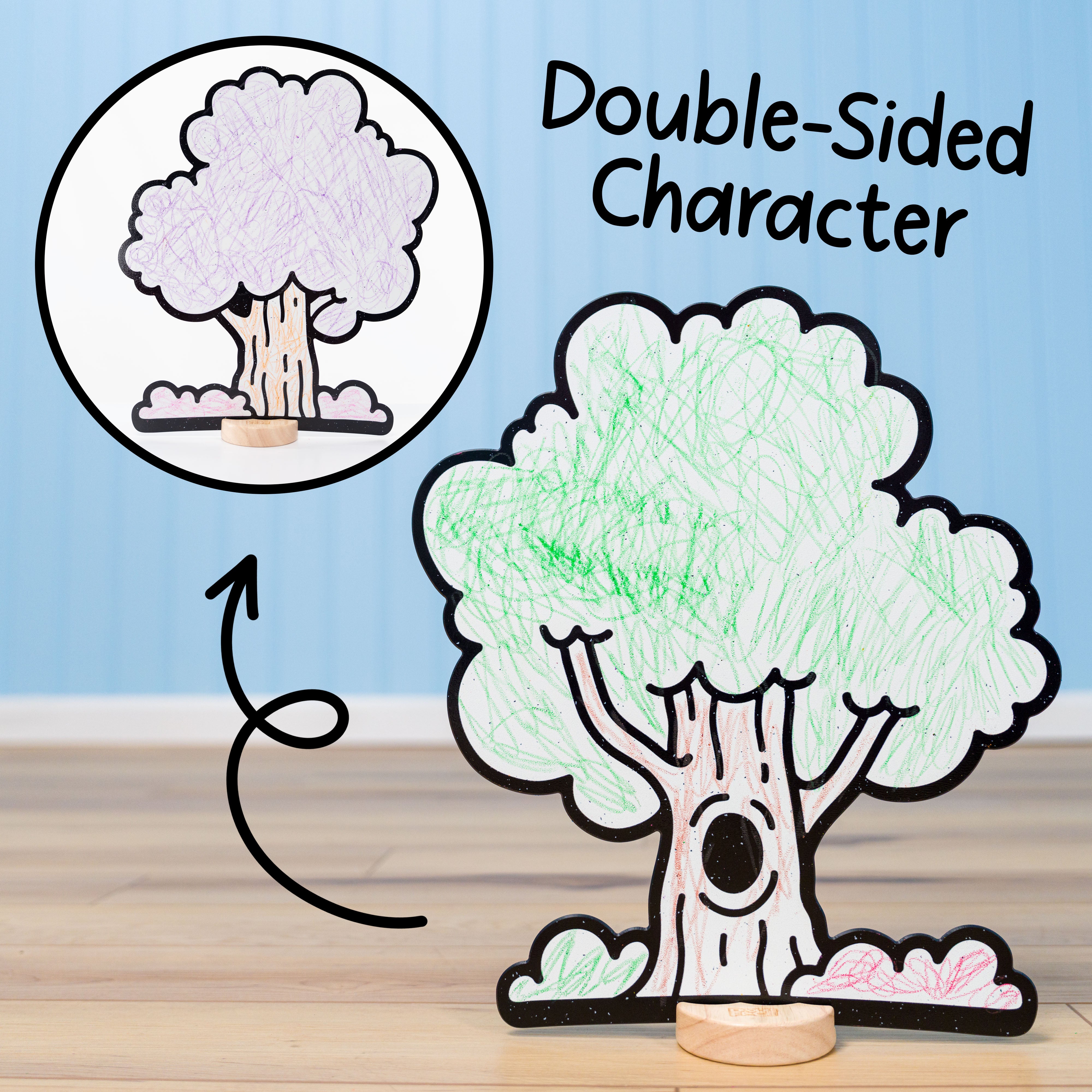Durable, Sustainable, and Safe. Premium thick materials and solid wooden bases ensure lasting durability, reduced waste, and genuine value. Made from high-quality, child-safe, non-toxic materials for worry-free play. A Montessori-inspired toy that benefits families, classrooms, and the planet. Characters made in the USA; crayons made in China.